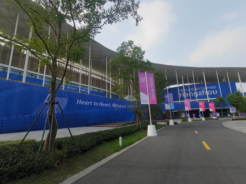 浙江省杭州市大約是台灣面積一半大,人口有1200多萬,媒體與運動員住宿的媒體村在新開發區蕭山區,杭州亞運使用場館擴及附近的紹興、寧波、溫州、金華與湖州,紹興有棒壘球、排球在輕紡城、攀崖在柯橋,場館間移動距離相當大。