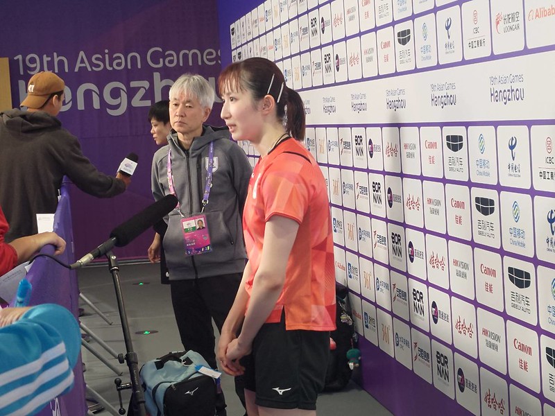 杭州亞運桌球賽事在拱墅運河體育公園體育館進行,台灣桌球選手鄭怡靜30日下午在8強戰忍著腰傷激戰日本好手早田希娜,比賽耗時69分鐘,鄭怡靜2比4敗陣,賽後痛哭感謝協助治療、復健的團隊。