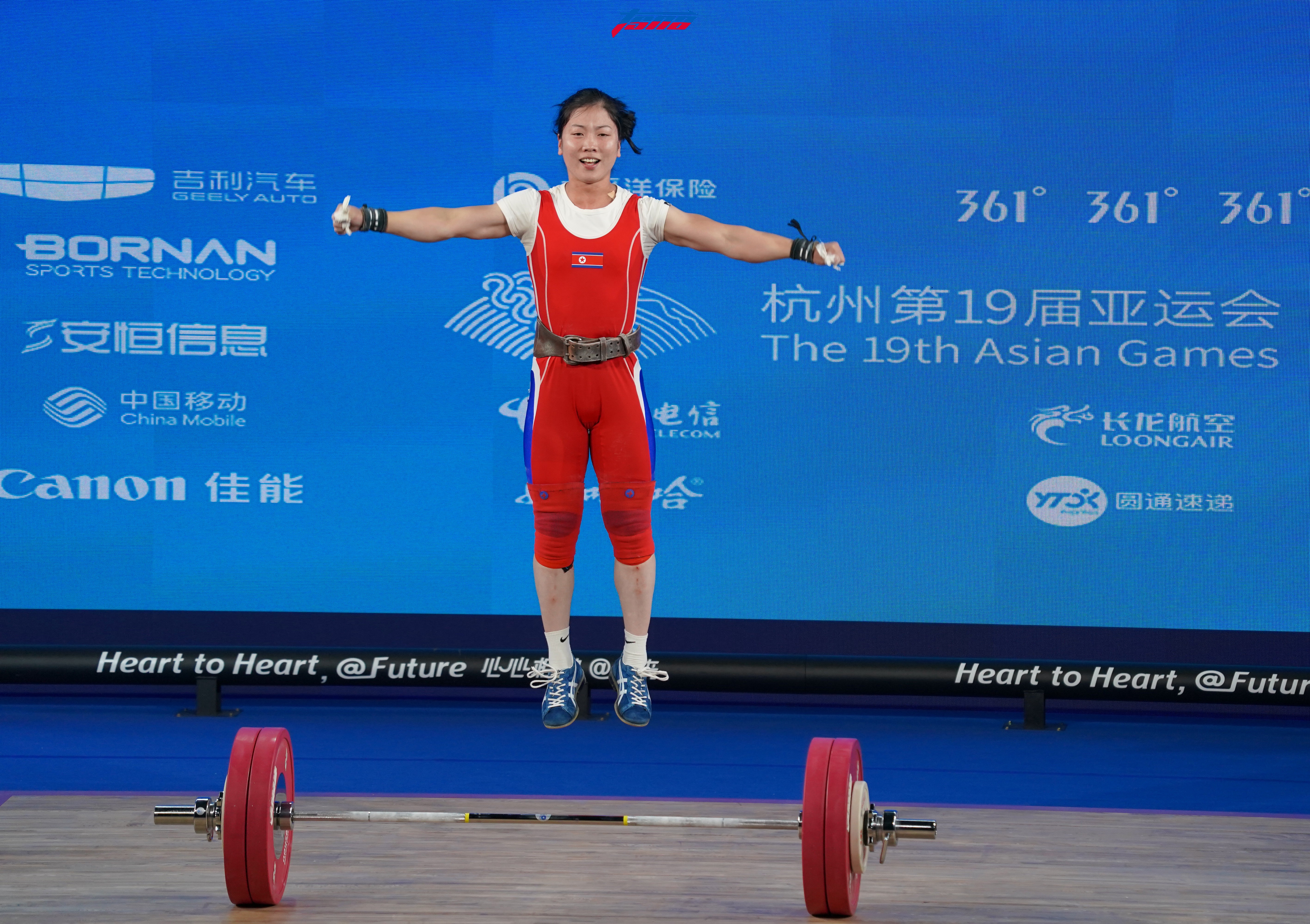 杭州亞運舉重今天(9/30)登場,首日中華隊世界錦標賽3金得主、18歲新星陳冠伶於女子55公斤級以抓舉90公斤、挺舉108公斤、總和198公斤,名列第4,無緣頒獎台。金牌由初次參加國際賽的朝鮮黑馬姜賢景(音譯)以抓舉103公斤、挺舉130公斤、總和233公斤,3破世界紀錄拿下。