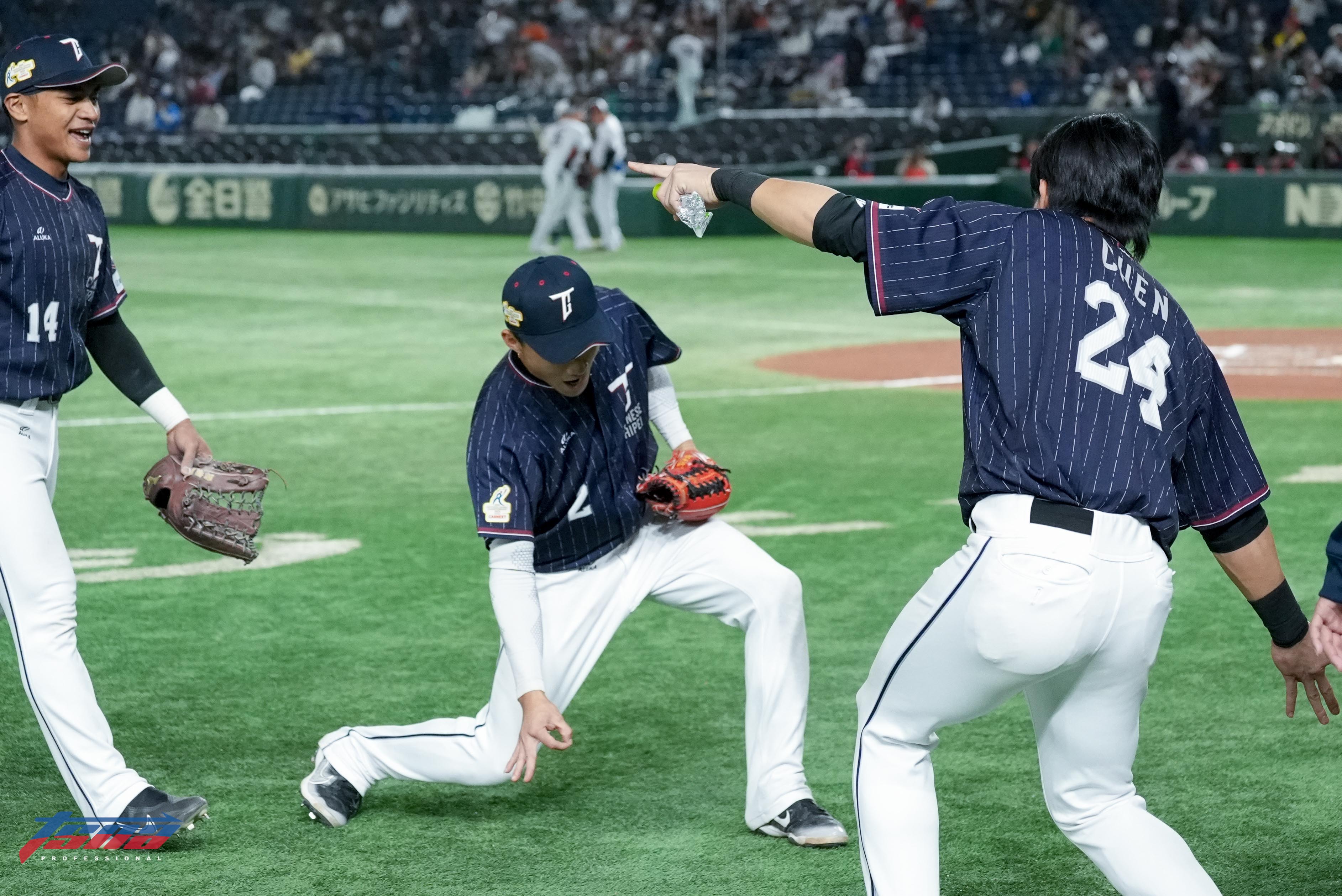 「信哥」在東京巨蛋灑天網!今(18日)中華隊對韓國,6局下,韓國進攻,一、三壘有人,金亨俊打出中外野飛球,眼看球要落地,郭天信以滑接方式美技接殺這球,化解失分危機,nice play贏得全場球迷熱烈掌聲,連日本、韓國球迷都為他歡呼。