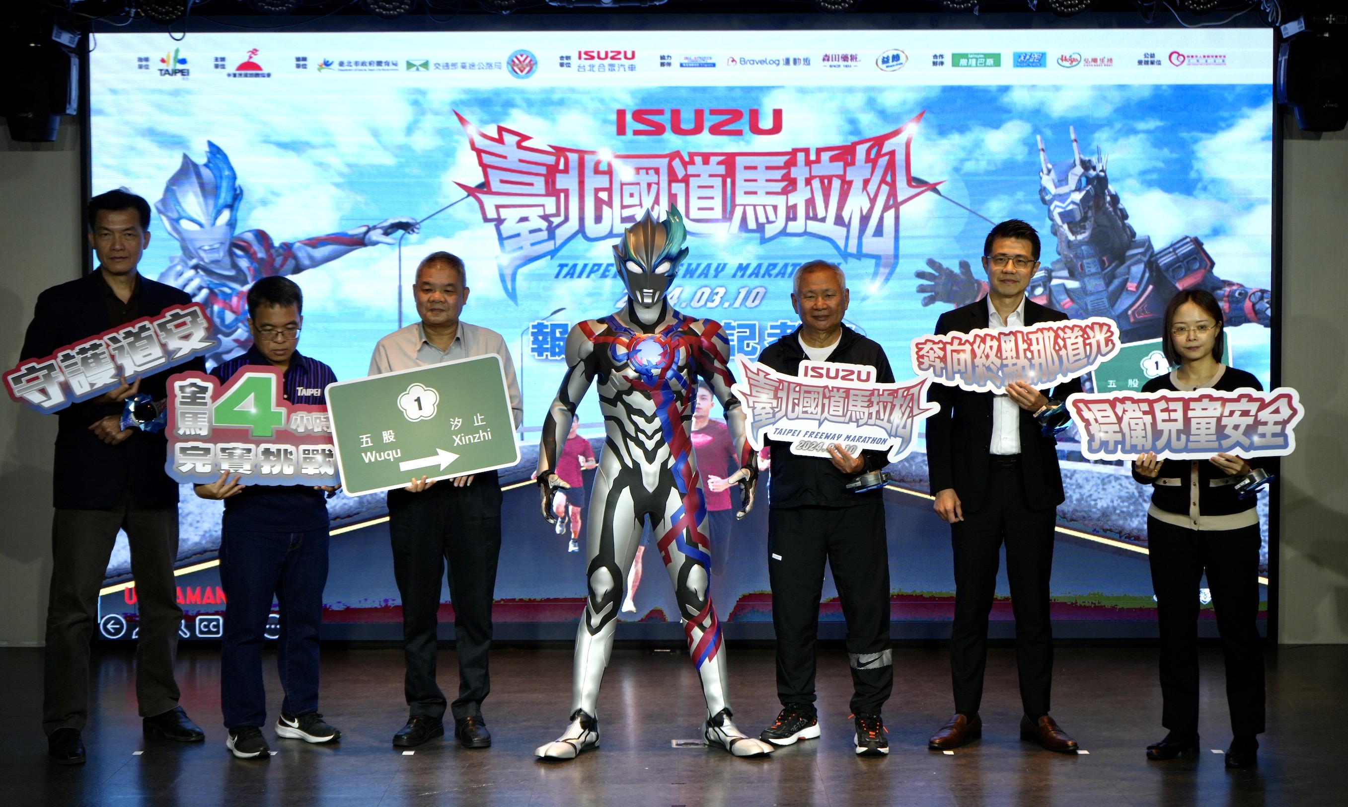 2024 ISUZU台北國道馬拉松今天(21日)舉行賽事記者會,除了宣布即日起開放報名,而賽衣、完賽獎牌、毛巾、浴巾都有超人力霸王圖案,也呼籲大家一起守護交通安全。