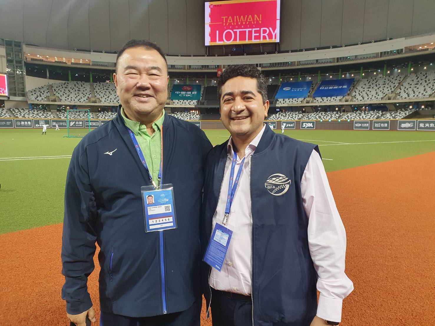今天中華棒協副領隊、前中華隊重砲趙士強特別到球場看巴基斯坦練球,也跟他的朋友領隊Shah Syed Fakhar Ali打招呼,Shah Syed Fakhar Ali邀請趙士強來指導球隊,他表示球隊缺少很強的打擊跟投手教練。