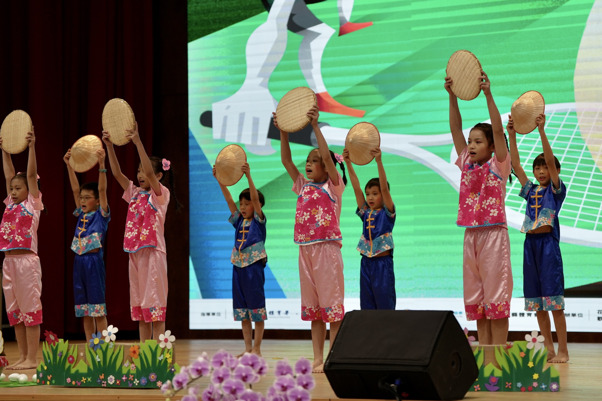 開幕典禮表演活動,眾多小朋友可愛地手舞足蹈,用淺顯易懂方式詮釋客家精神。(李宇政攝)