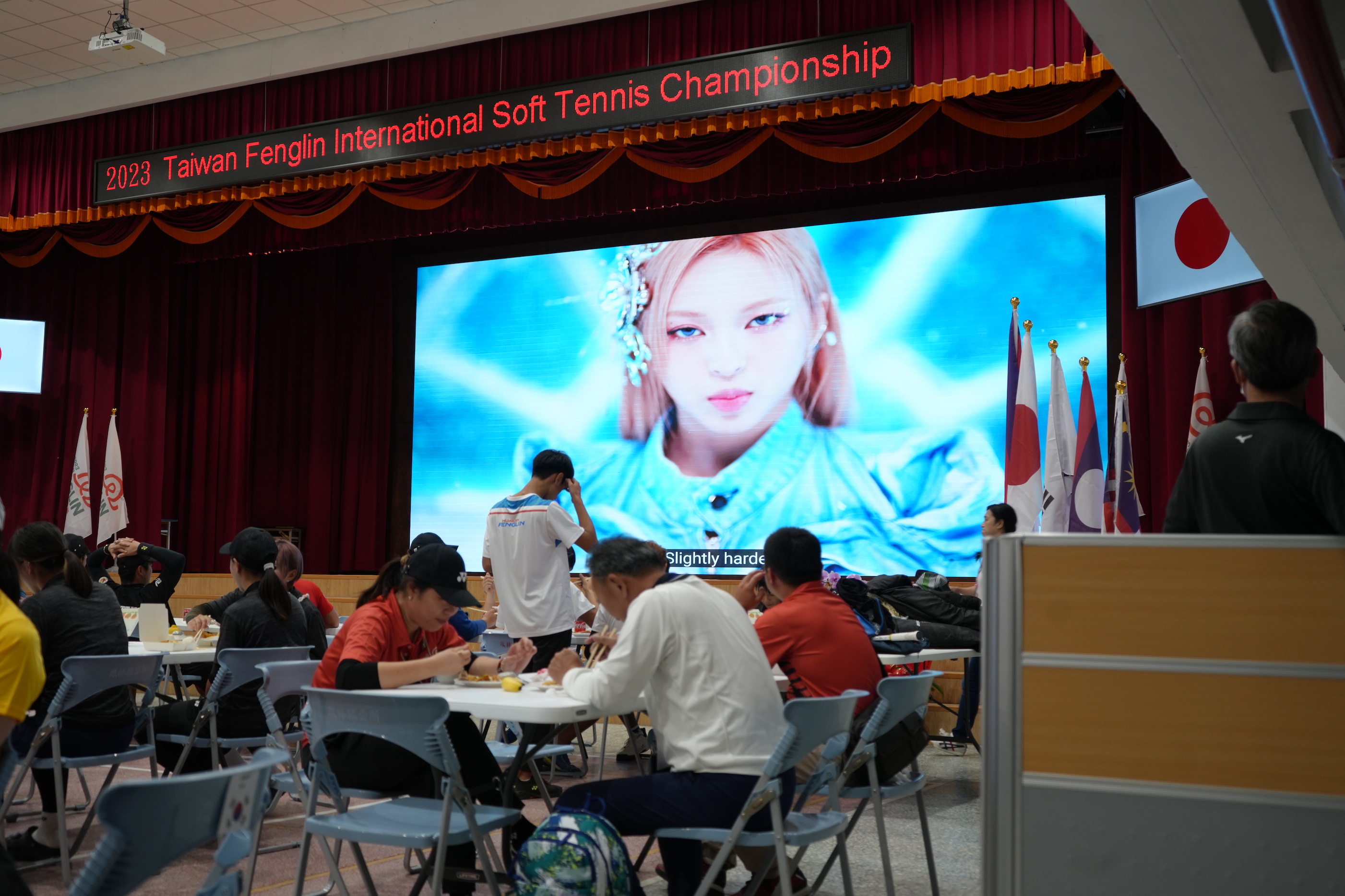 鳳林國小藝文中心內的LED大螢幕。(李宇政攝)