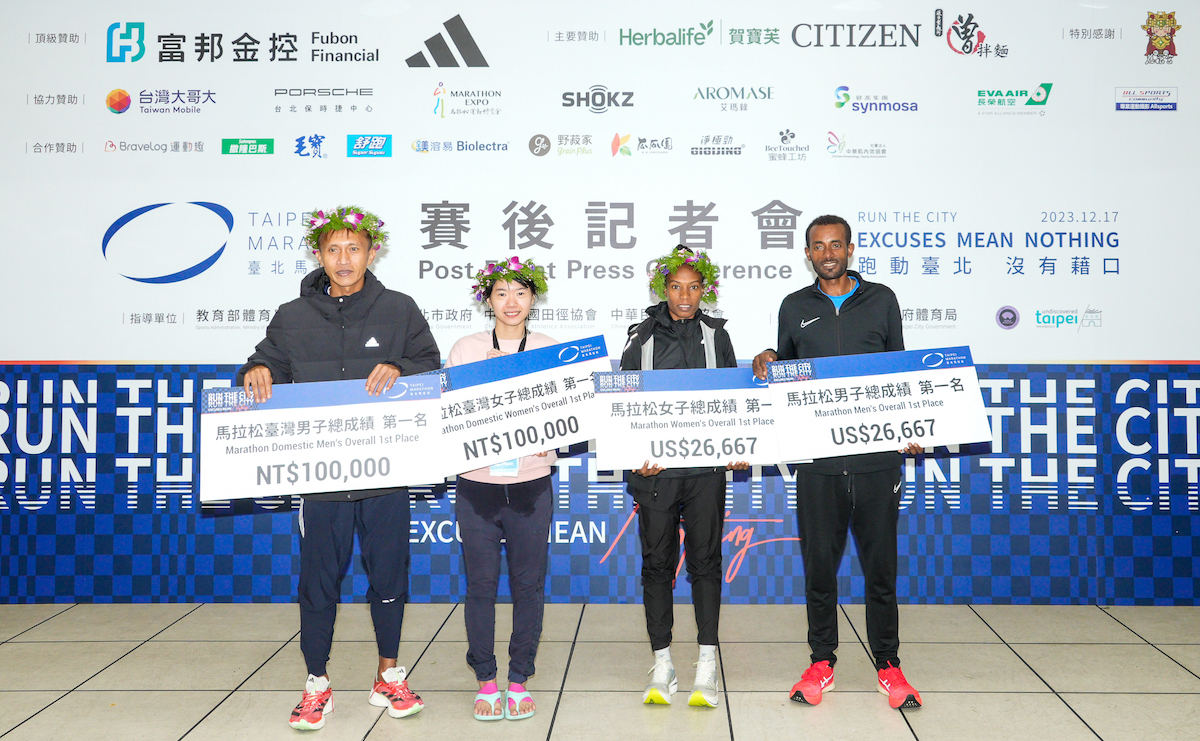 2023台北馬拉松冠軍選手合照。(路跑協會提供)