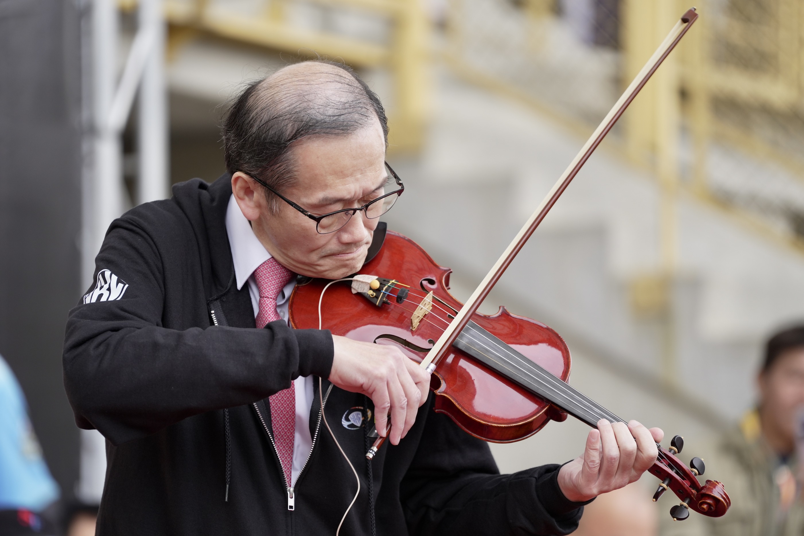 台北市橄欖球協會理事長、高雄義大醫院院長杜元坤在開幕典禮表演小提琴。(李宇政攝)