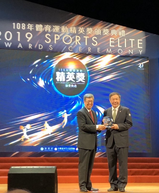 2019年林華韋獲頒體育精英獎終身成就獎,由副總統陳建仁頒獎。 (圖/林華韋提供)