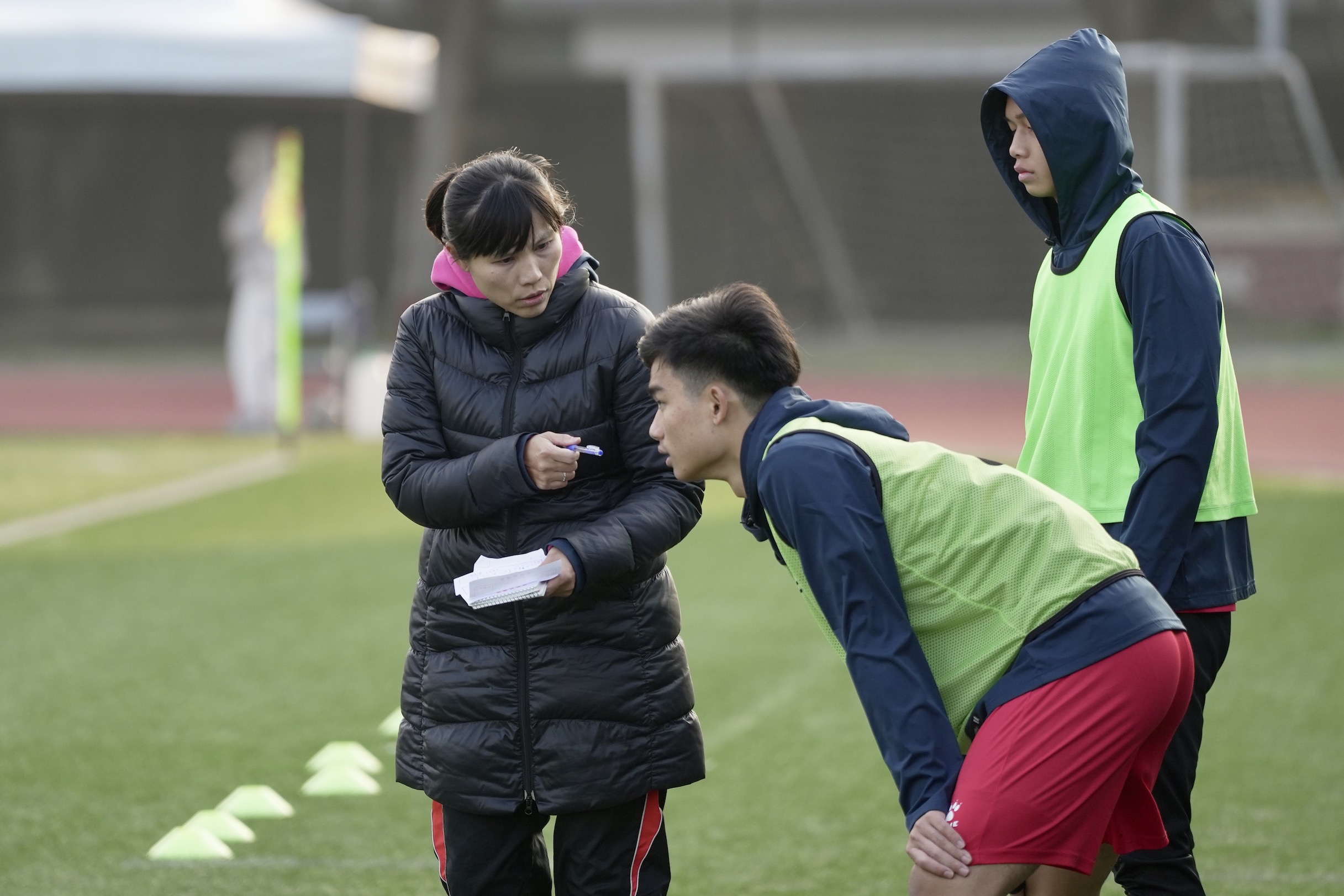 中正高中教練梁羿蓁(左)。(李宇政攝)