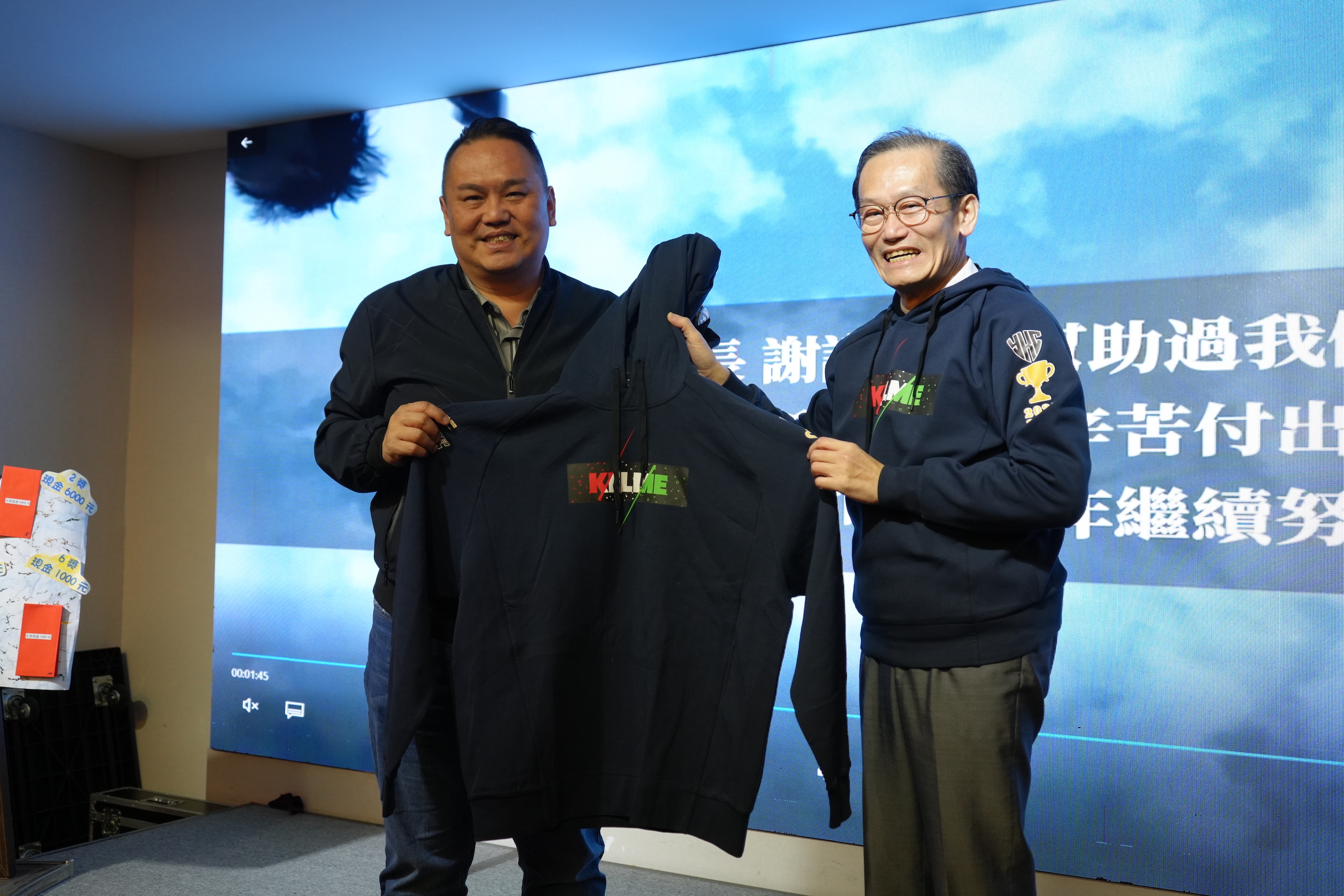 台北元坤隊今晚舉行二連霸慶功宴,相當支持體育的台北市議員陳重文(左)也到場。(李宇政攝)
