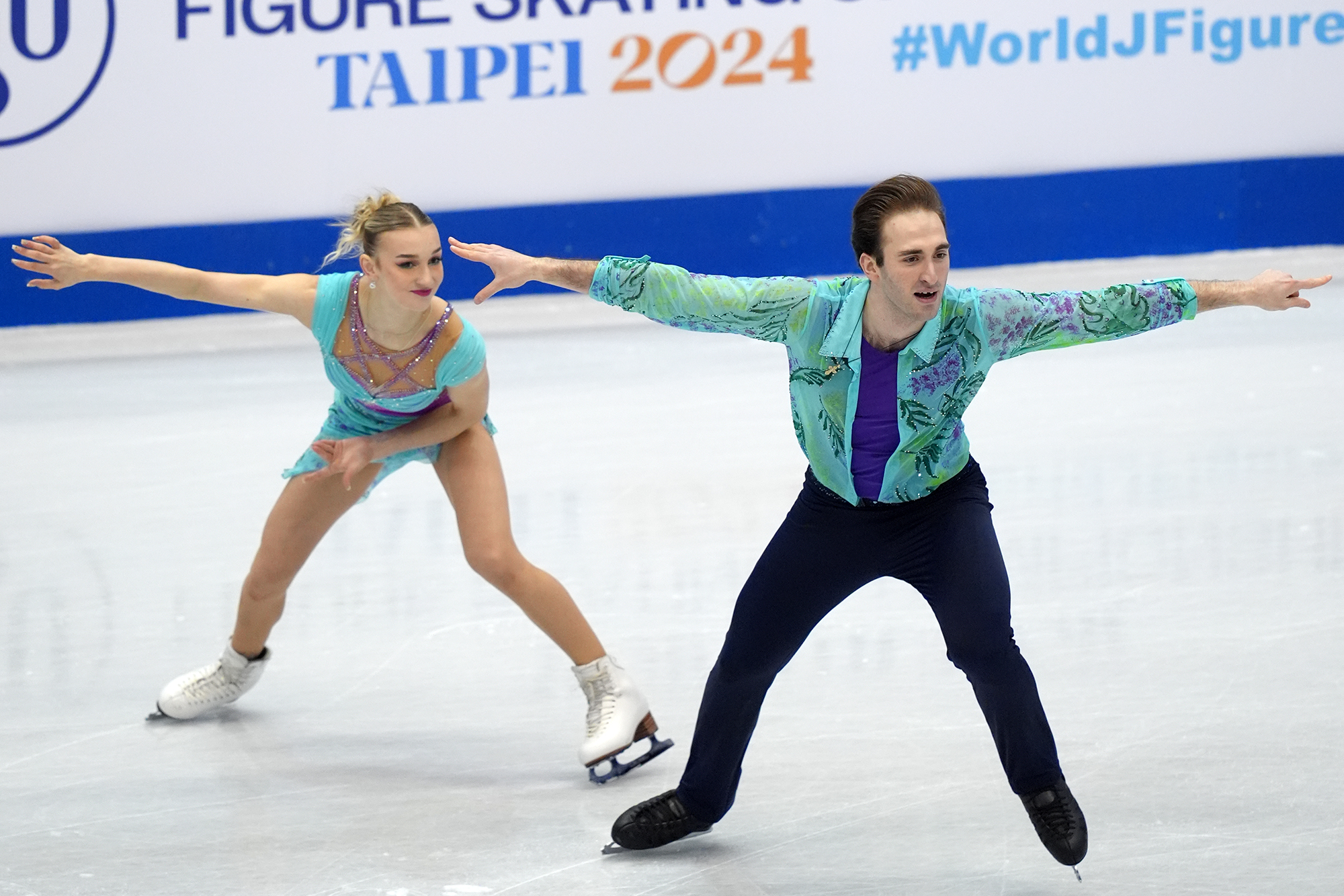 2024年世界青年花式滑冰錦標賽今天在臺北小巨蛋揭幕,也是繼2017年後台灣再度舉辦此大賽,首日先後進行雙人、女子單人等2項目短曲角逐,女子短曲依然是今年將原道冬季青年奧運金、銀牌對決,但銀牌辛智娥略勝一籌,以生涯新高73.48分,微幅領先在賽事尋求衛冕日本島田麻央的72.60分。