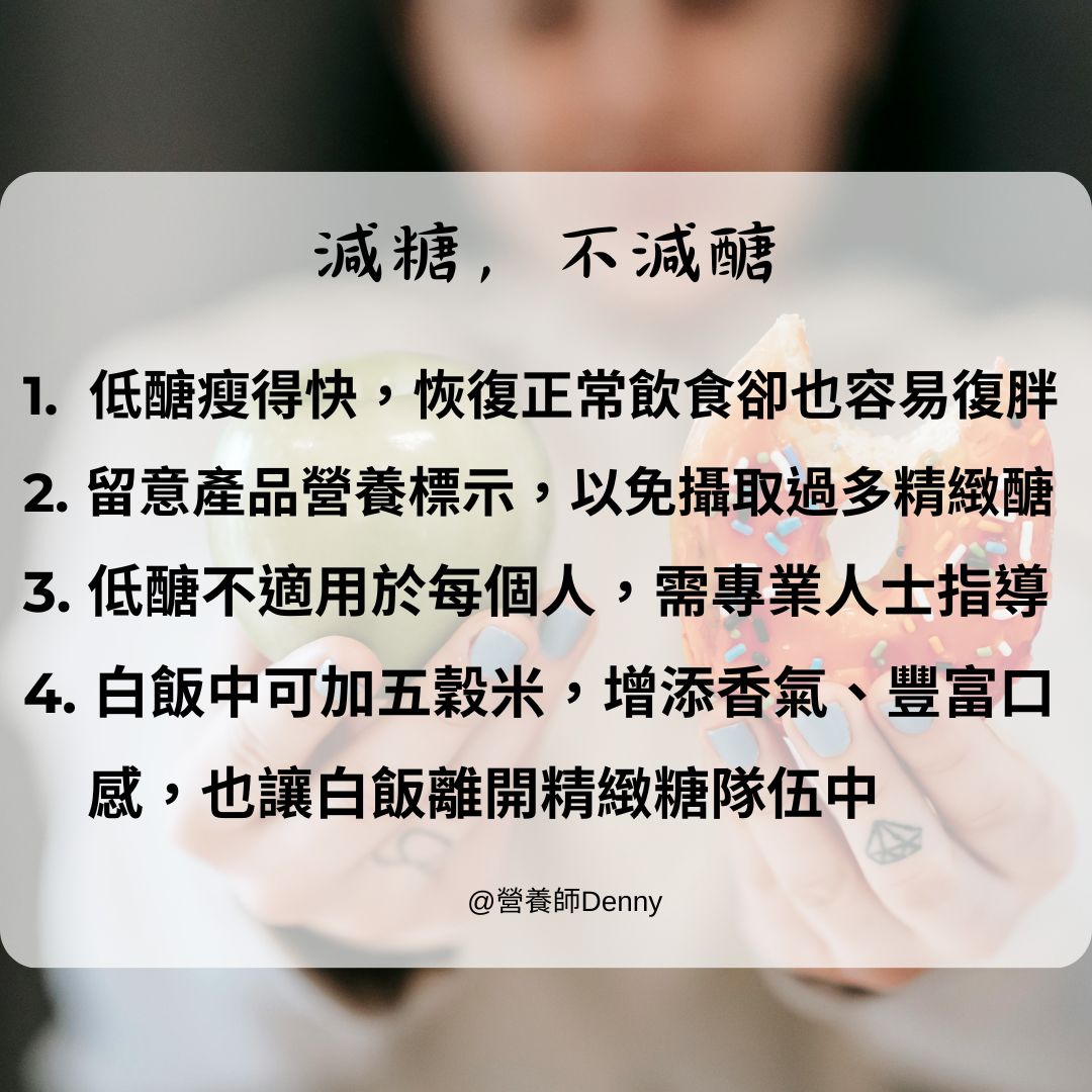 其實不論是生酮飲食、低醣飲食,甚至是其他飲食控制,我的想法是這個方法長久執行的妥當性,以及恢復正常飲食後復胖的可能性。其實要減的是「糖」而非「醣」,這些都是為了達到減重而透過生化代謝途徑去思考出的方案,最土法煉鋼卻也最健康的方式,仍然是運動搭配良好的飲食習慣。
