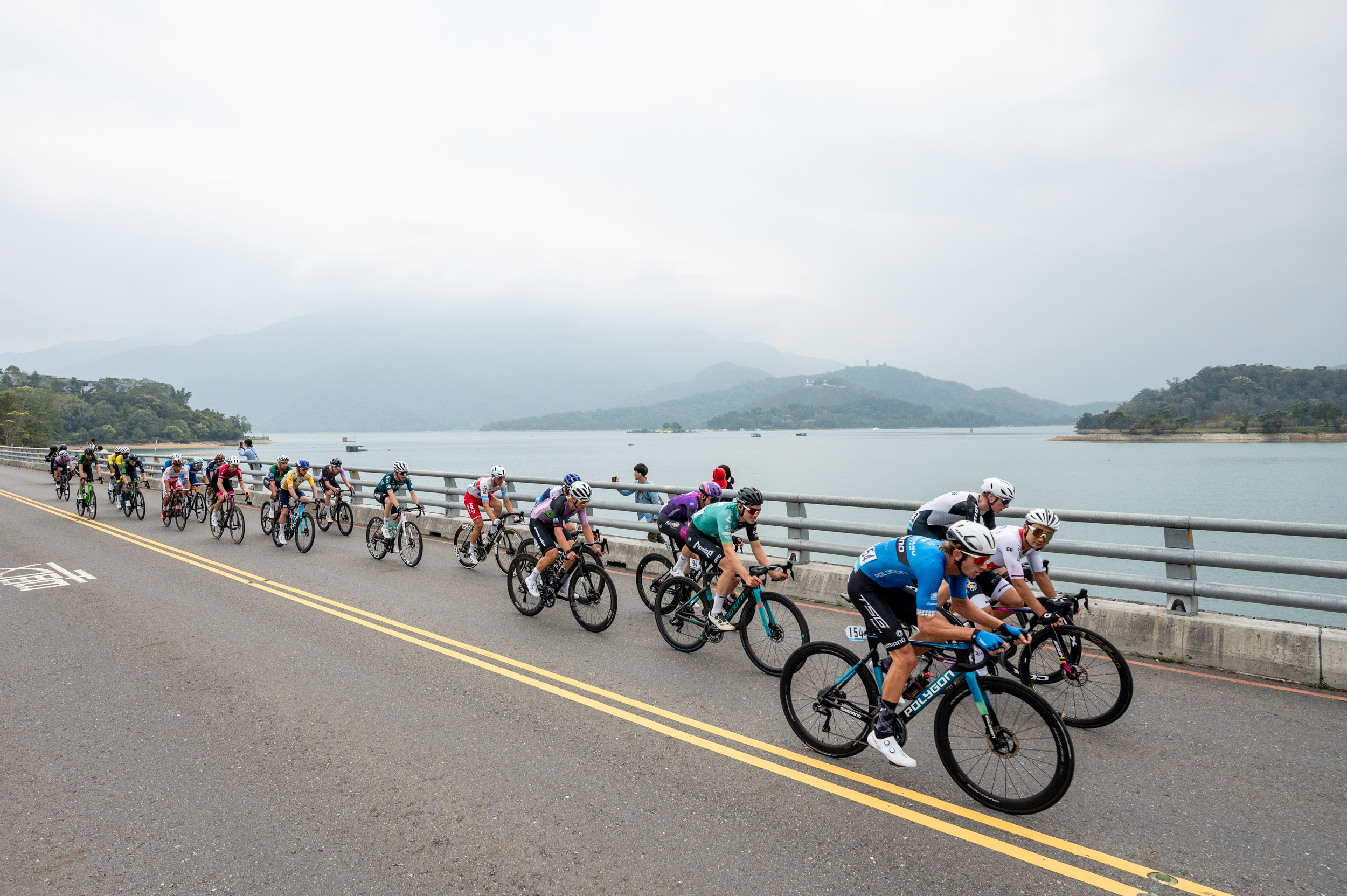 主集團繞行日月潭。(國際自由車環台賽提供)