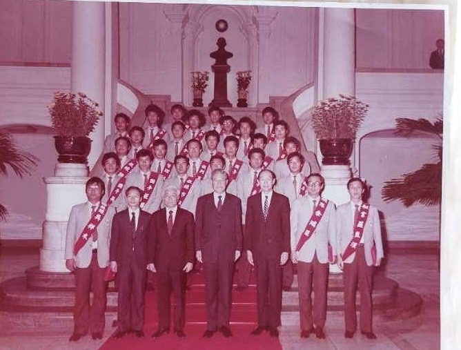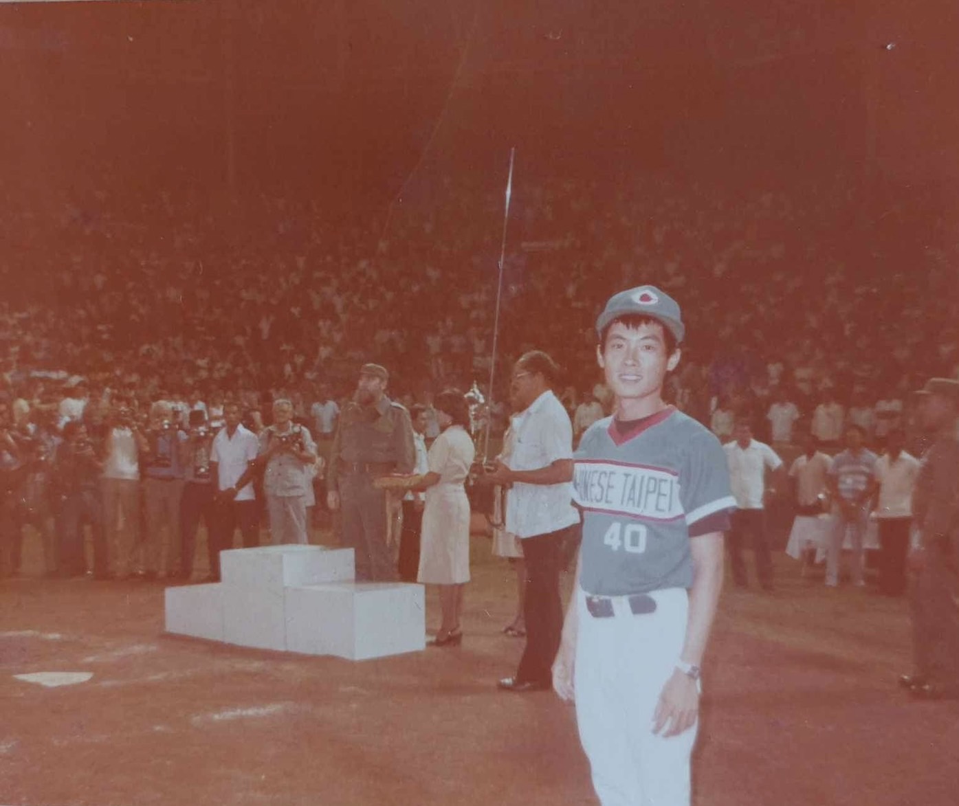 呂文生在1984年古巴世界盃的頒獎典禮留影,站在頒獎台前的是古巴強人卡斯楚。圖/呂文生提供