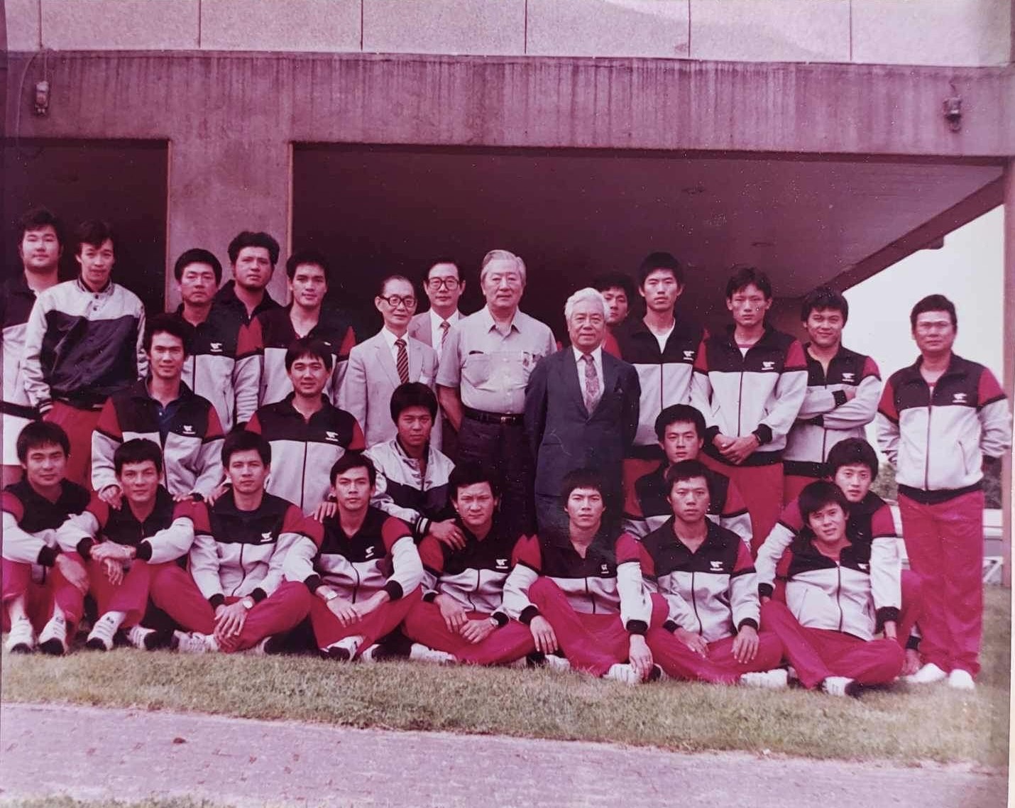 1984年中華奧運代表,與中華棒協理事長嚴孝章(二排中著灰色西裝)合影。圖/呂文生提供
