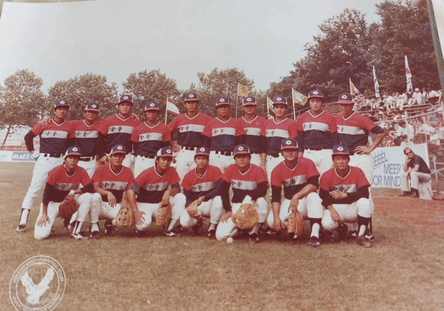中華隊在1983年洲際盃賽不能以「中華民國」名稱出賽,球員只好把「民國」的繡字拆掉。圖/呂文生提供