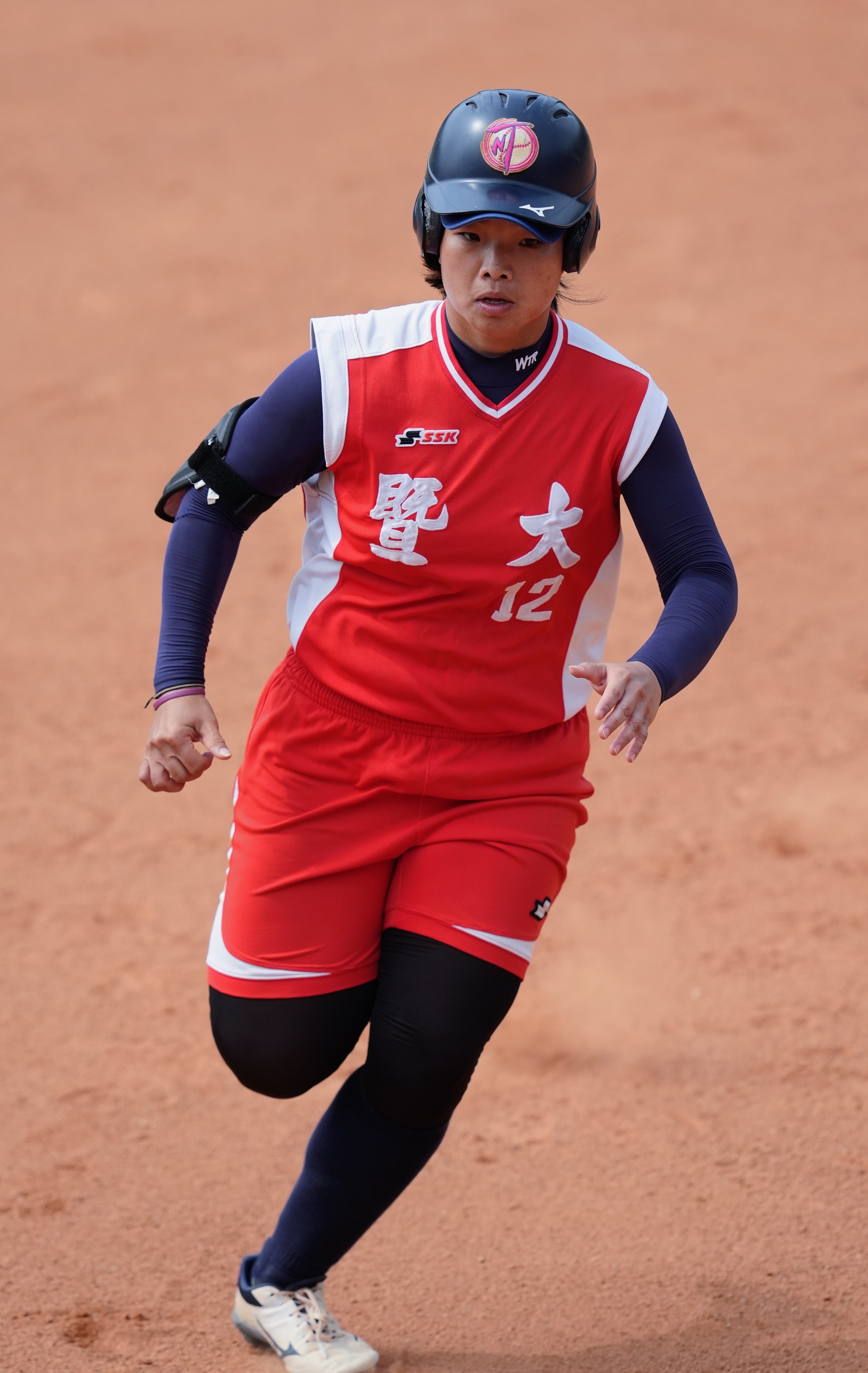 鄧宇媜對高雄師範大學單場2安打、4打點,是暨南國際大學最出色打者。(中華民國大專院校體育總會提供)