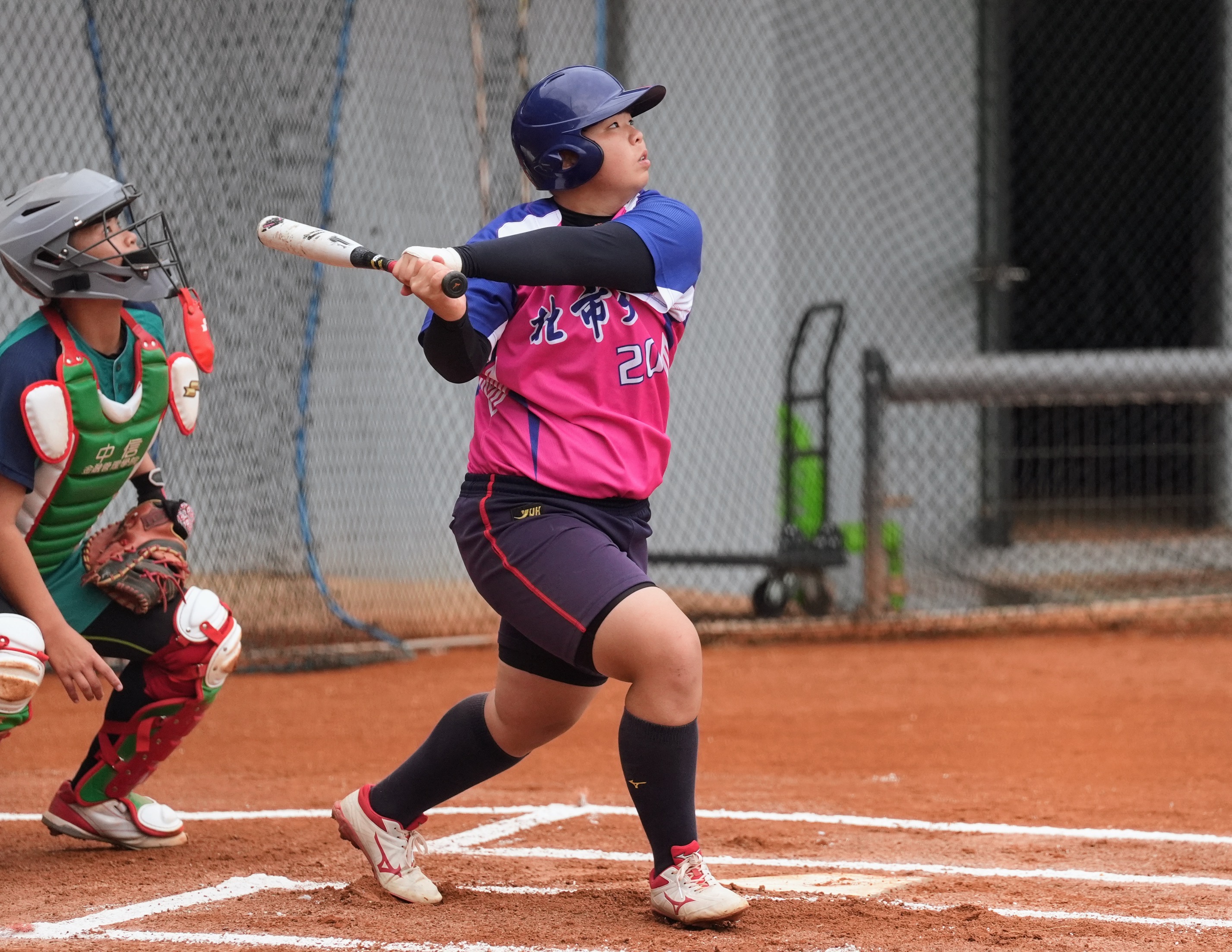 邱鈺然今天敲出1二壘打。(中華民國大專院校體育總會提供)