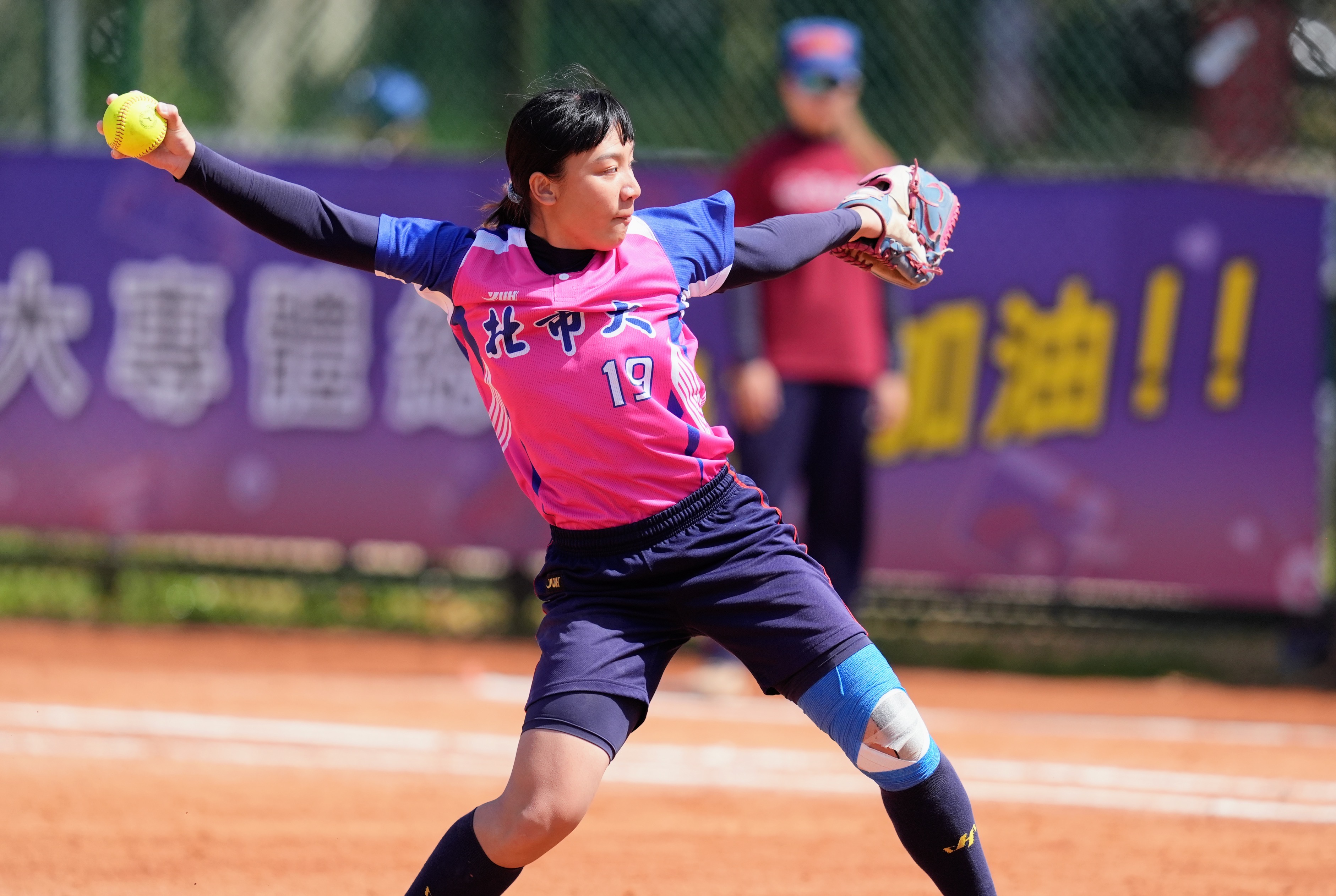陳柔翊登場後援後,有效限制暨南國際大學打線。(中華民國大專院校體育總會提供)