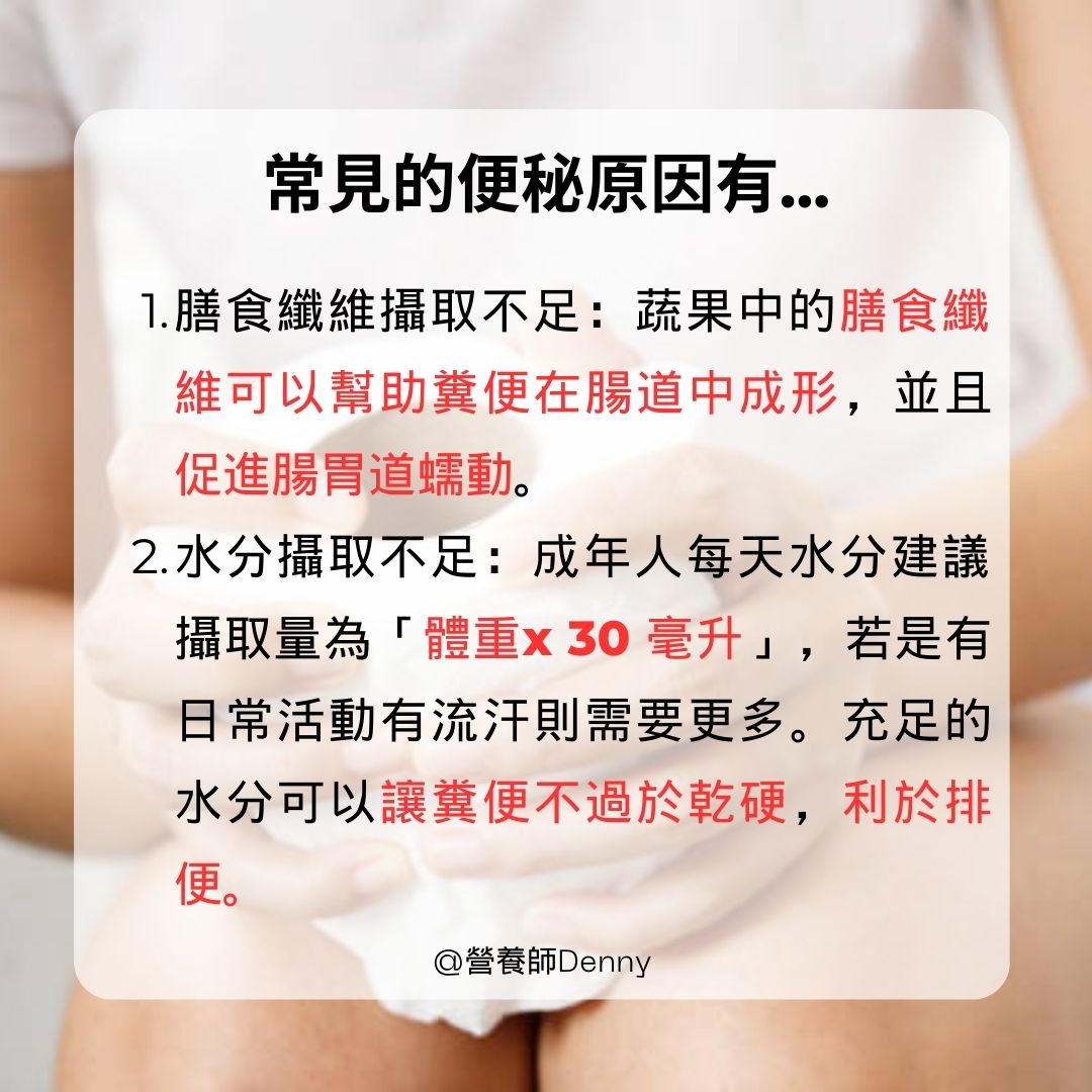 相信大家都有排便不順暢的經驗,最常聽到的就是蔬菜攝取不足,但往往事情沒有想像中的那麼簡單,我們常常在意識到自己蔬菜攝取不足時,在短時間內吃了大量的蔬菜,但是排便的情況就此改善了嗎?這就是便秘的主要原因嗎?其實不盡然,原因讓營養師來告訴你!