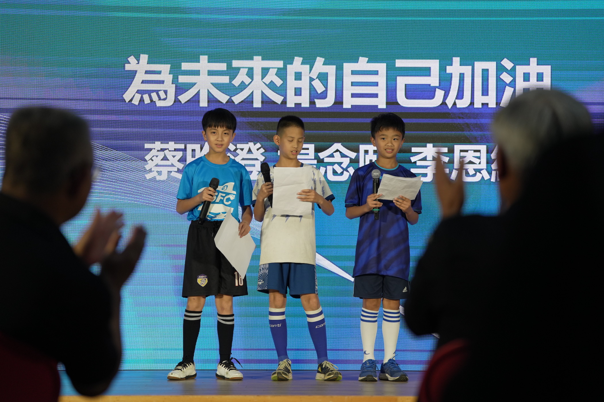 蔡昀澄、楊念頤和李恩緯三位小球員,念出未來對聯賽和自己的期許。(李宇政攝)