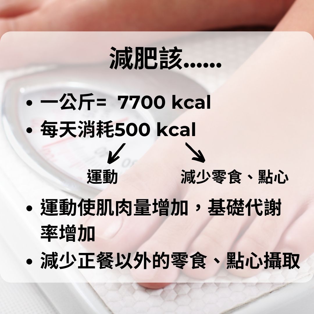 這麼說,一定會有人認為:那為何不每日減少攝取1000大卡,甚至更多呢?最主要是我們仍然要維持最基本的生理功能,因此過於嚴格的限制熱量攝取對減重是沒有太大的幫助,再來也有實驗證實嚴格的熱量限制(<800 kcal/天)對於減重來說,比起每日只減少500大卡的保守策略,最終的減重成效是相同的,並不會因為減少較多的熱量攝取,體重就可以無止盡的下降。