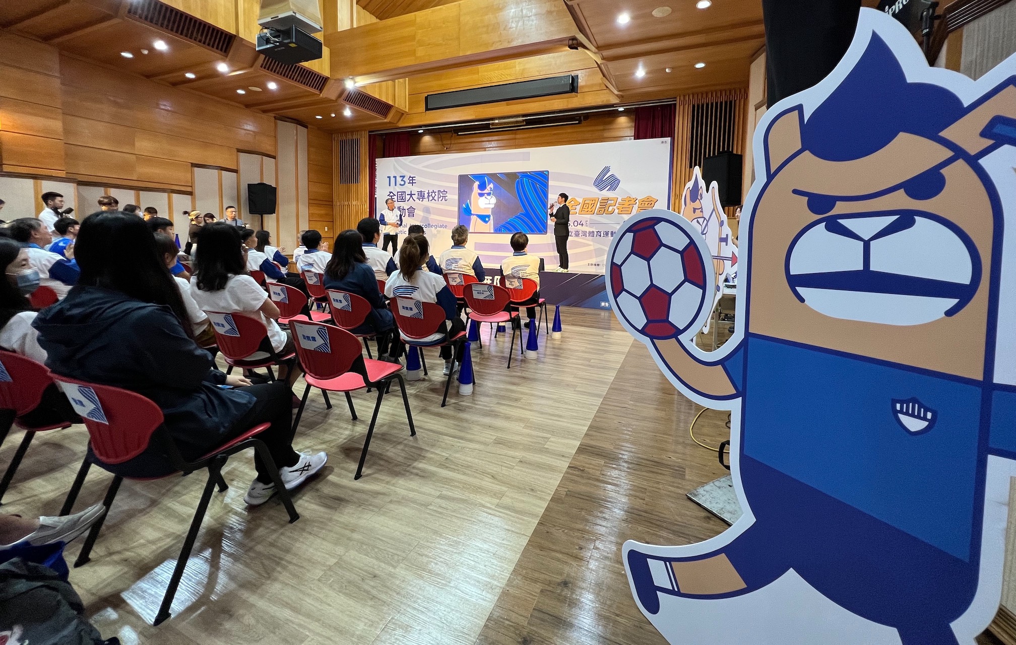 113年全大運在國立臺灣體育運動大學登場,今天公布首創虛擬網紅代言人小藍。校長許光麃也指出,希望透過這次運動賽會,把理論跟實務做更緊密的結合。