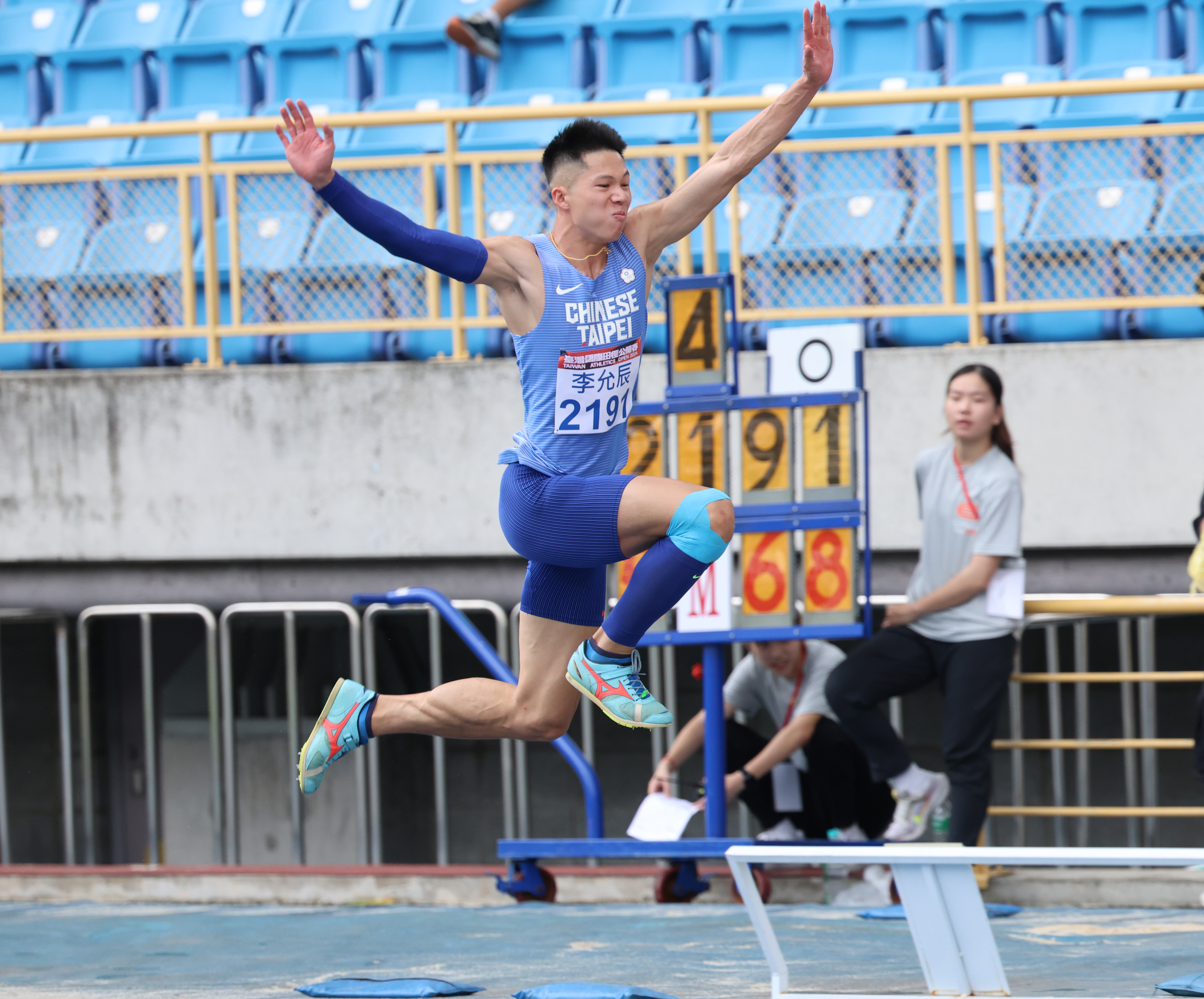 男子三級跳遠也差點出現打破高懸35年全國紀錄壯舉。奧運培訓隊李允辰最後一跳在接近17公尺處落地,第一時間他也興奮吶喊,不過最終因腳尖微幅超板,被判失敗,僅憑今天第1跳16公尺28衛冕成功,無緣傳奇乃慧芳1989年所締造16公尺65全國紀錄。