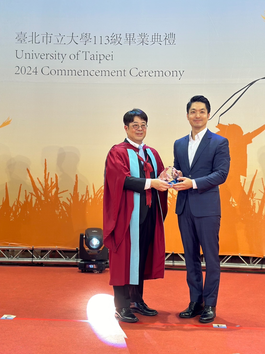臺北市立大學113級畢業典禮今天在天母校區體育館舉行,蔣萬安市長特別蒞校指導致詞外,並頒發傑出市長獎,同時邱英浩校長也將代表北市大,獻上「113年全國大專校院運動會金牌數及總錦標全國第一」紀念獎牌給臺北市政府,展現全校師生共同努力的成果。