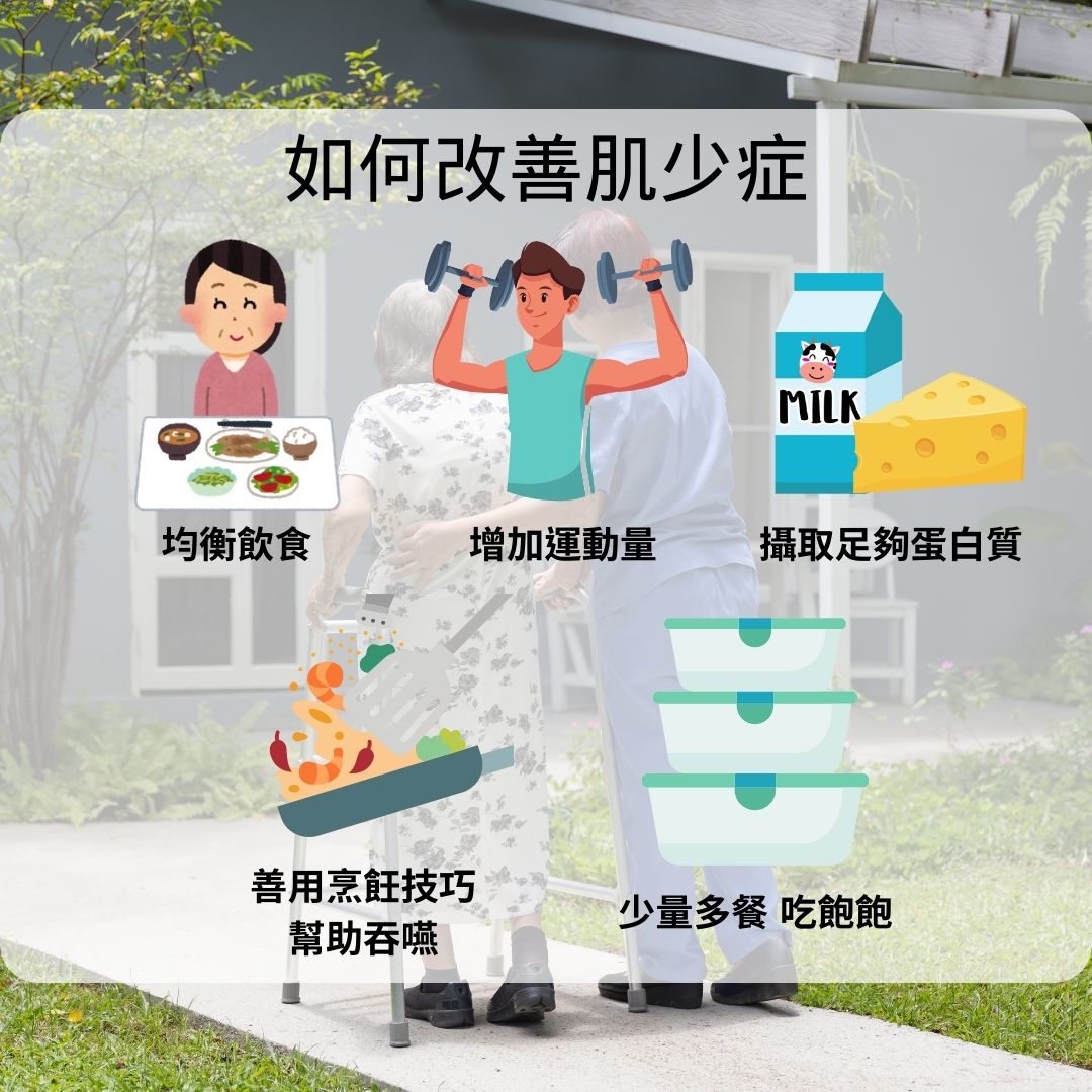 被診斷出的當下,應該先了解在營養攝取上是否有缺乏,再來檢視生活型態是否缺乏對肌肉的刺激,再針對需要改進的地方去做修正。而「肌少症可不是年長者的專利」由於3C產品的關係,許多年輕人閒暇之餘,逐步出戶,不但缺乏活動量,也缺少日曬的機會,造成肌肉質量下降的同時,骨質密度同樣也無法提升。