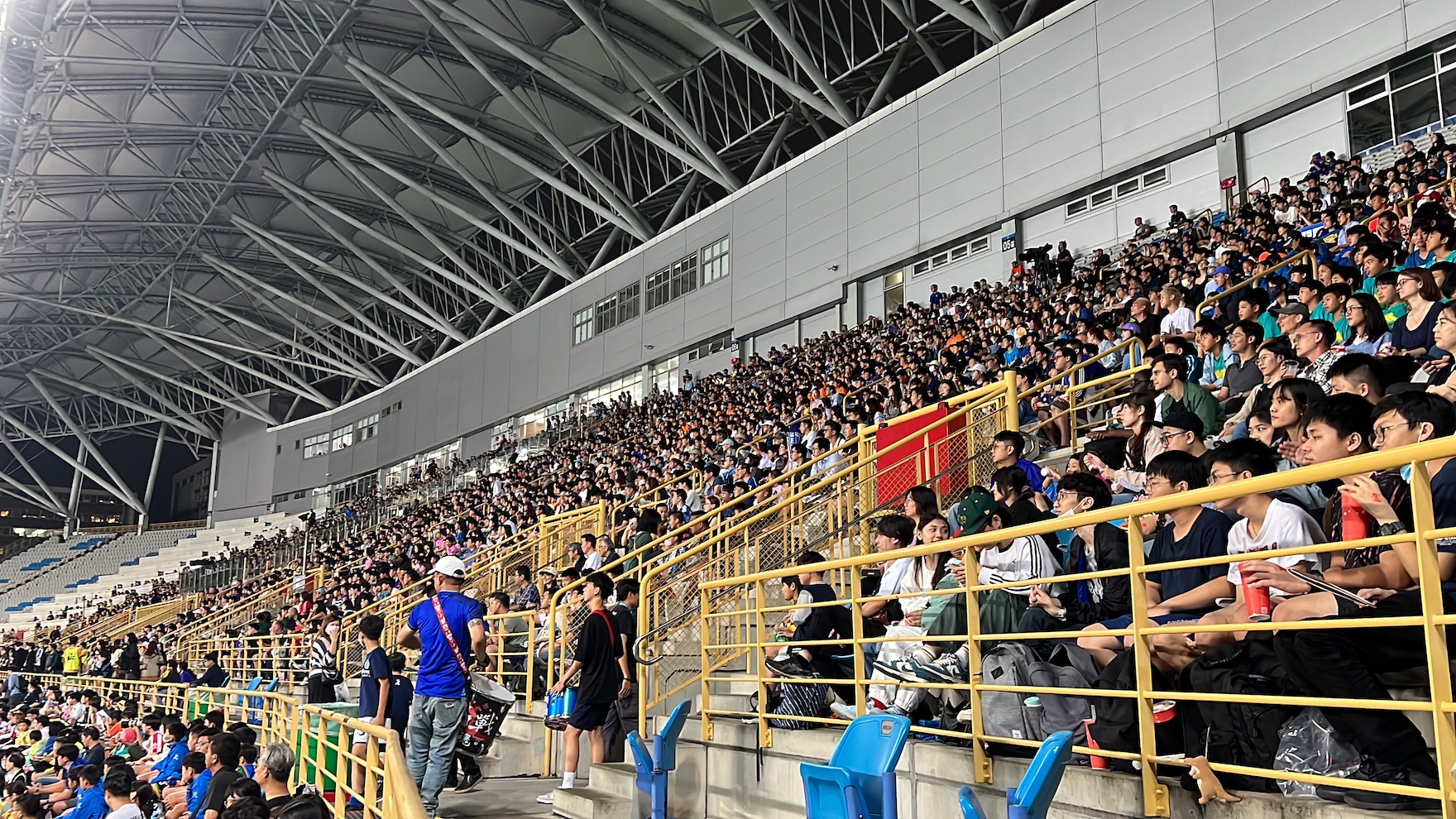 雖然比賽過程雨勢不小,但仍有5700名球迷「捍衛主場」。(李宇政攝)