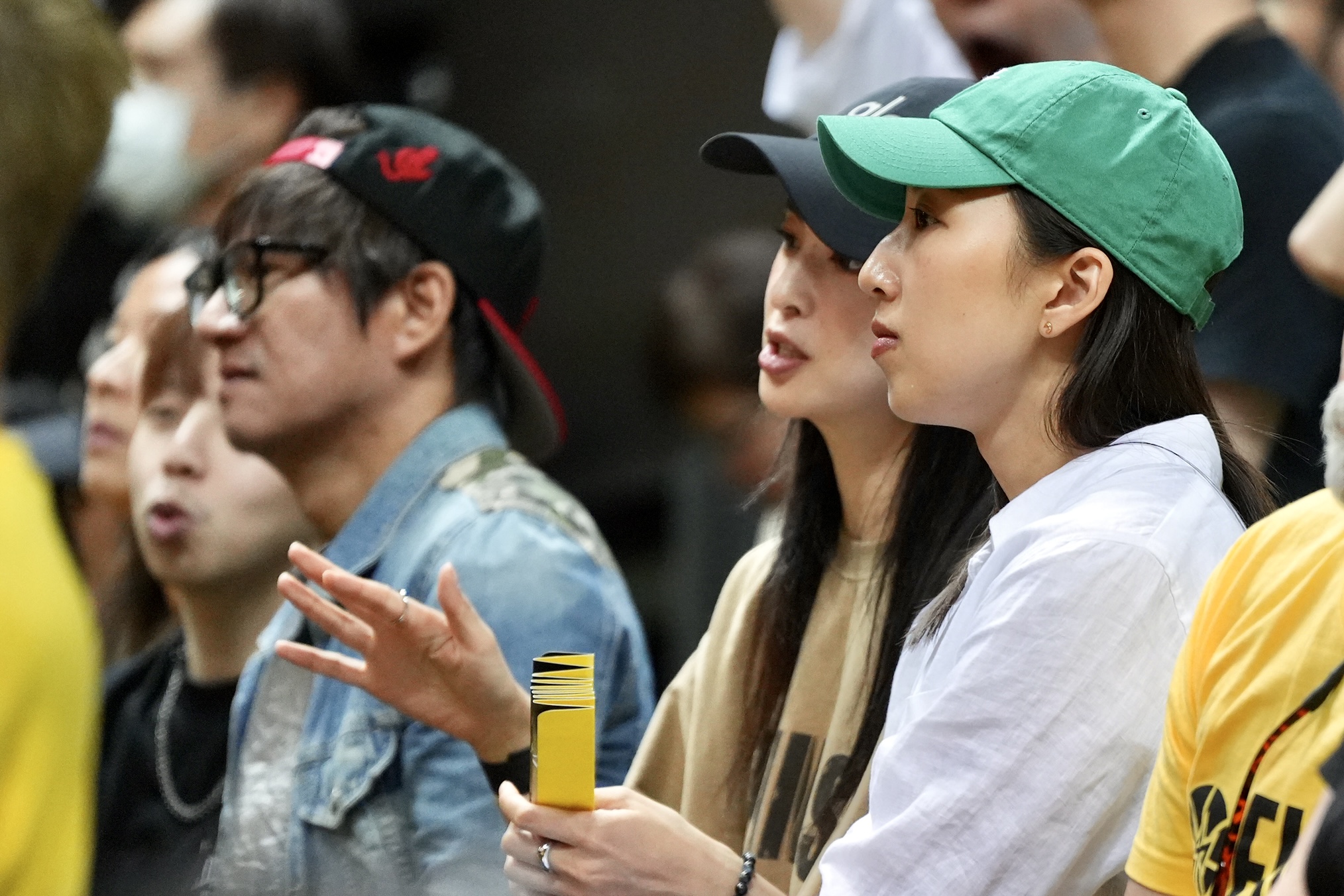 運動場上不只運動員,場邊的名人也是鎂光燈焦點。新北國王17日在主場迎戰桃園璞園領航猿,多位名人、明星坐在場邊吸引目光,連網友也討論,「藝人是不是都支持國王?」