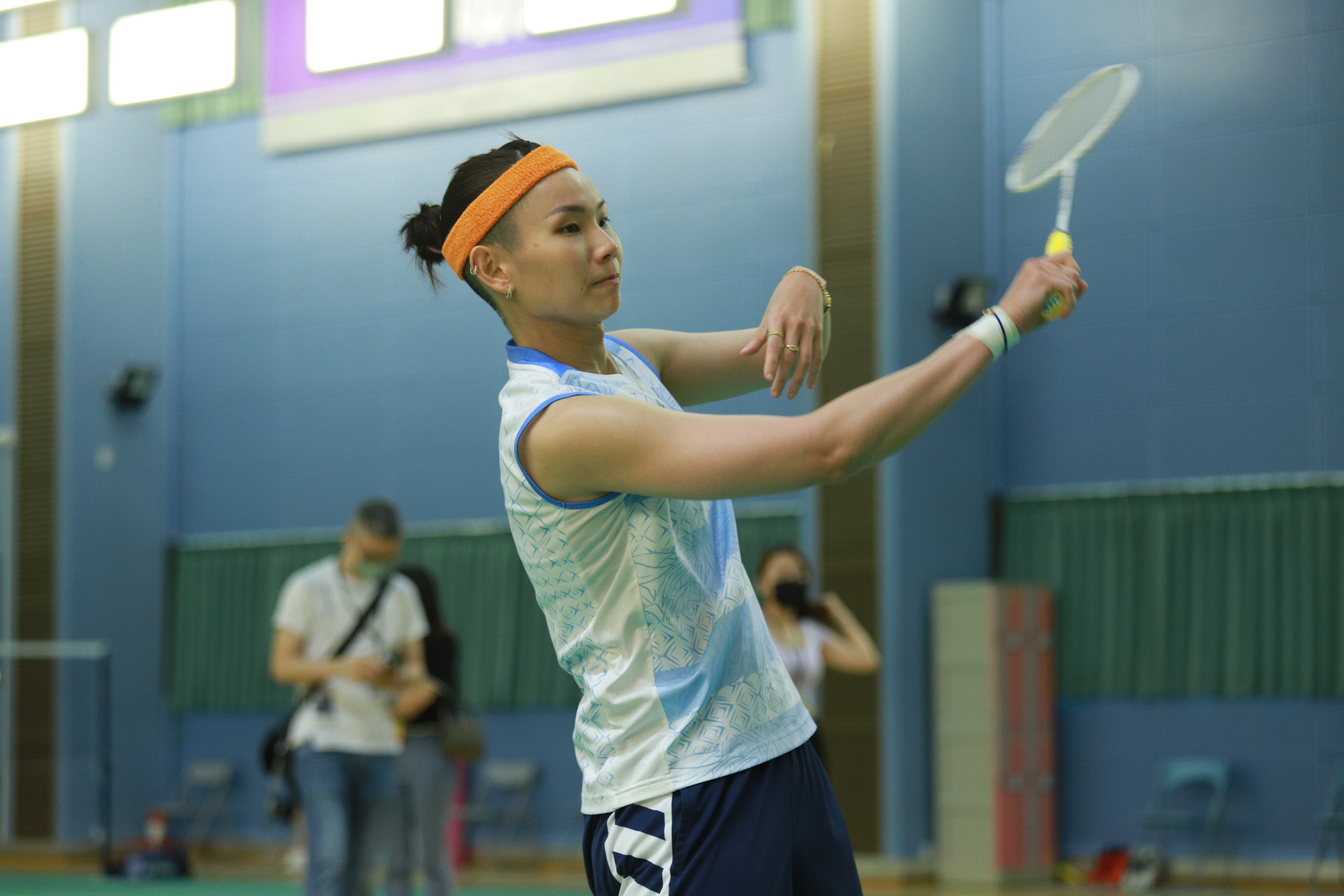 戴資穎現身國家訓練中心羽球場進行對打訓練。(王毓健/攝)