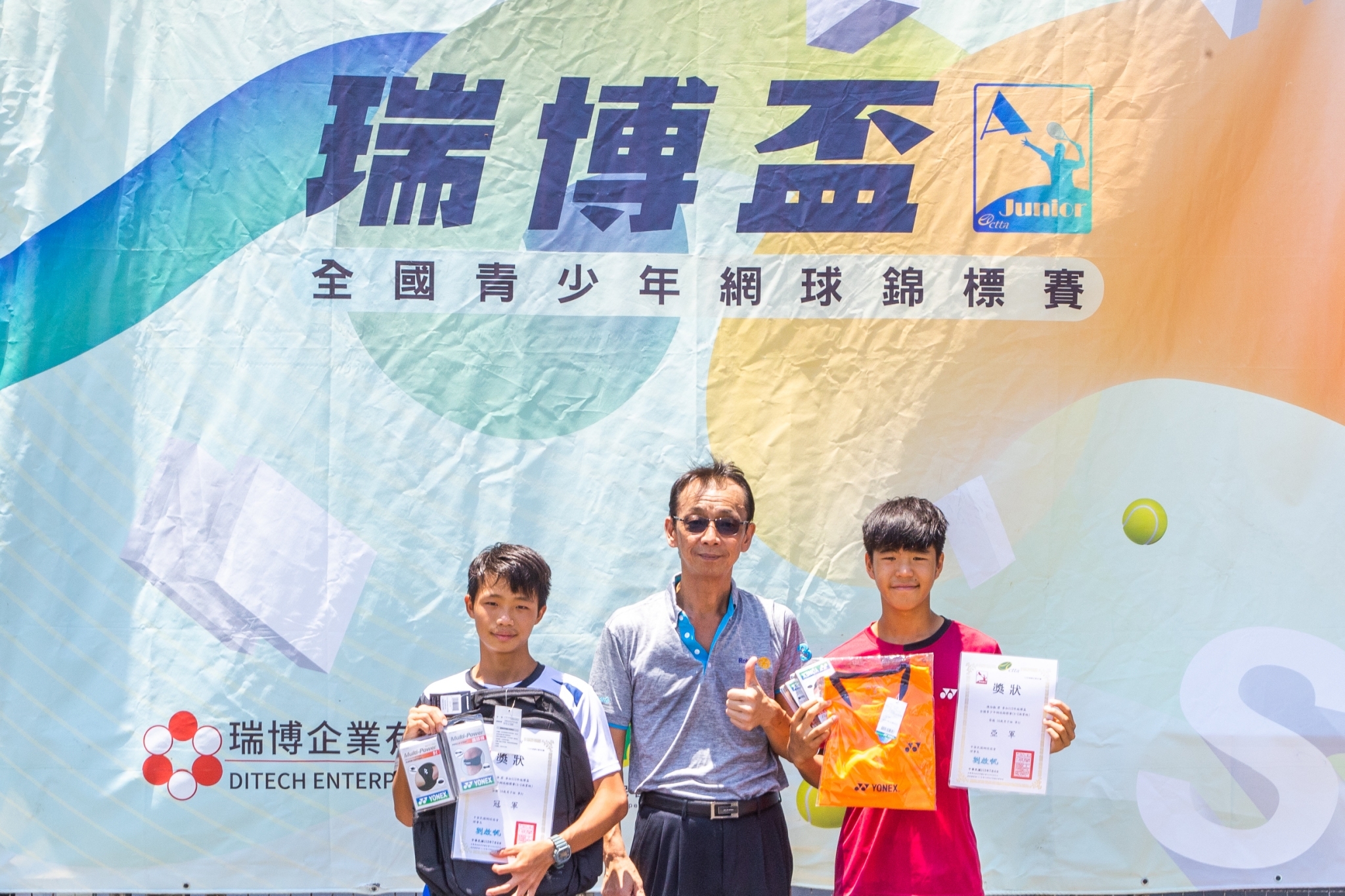 「瑞博盃全國青少年網球錦標賽」今天16歲男、女子單打冠軍出爐,分別由毛冠淮、林郁晨奪冠,由瑞博企業董事長、同時也是中華民國網球協會副理事長邱錫賢親自頒獎,對於這項已經邁進第四年的臺灣青少年最高等級的A級賽事,邱錫賢也提出未來更宏遠的構想,希望能協助提供臺灣青少年網球更好的舞台。