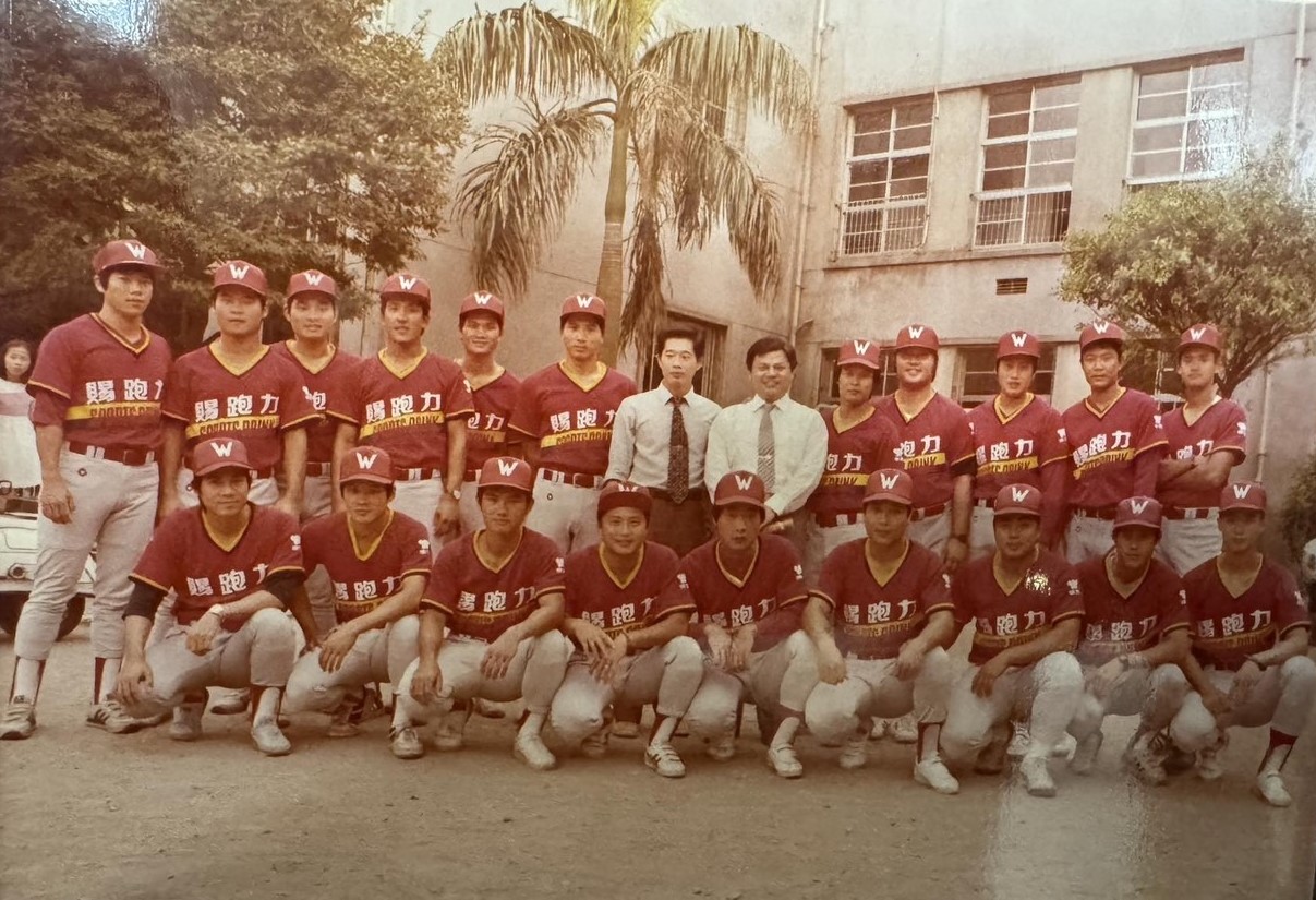 1983年文化大學穿上贊助商味全飲料品牌出賽,涂鴻欽(後排右2)是大一新生。徐國銘提供