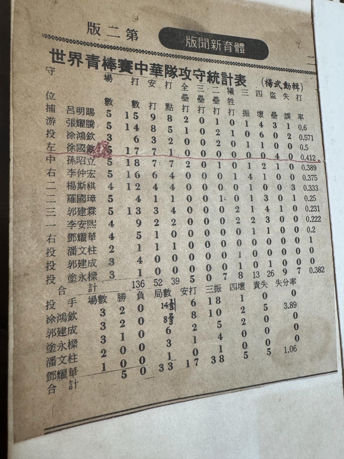 涂鴻欽獲世界青棒賽最佳投手的剪報資料。 徐國銘提供