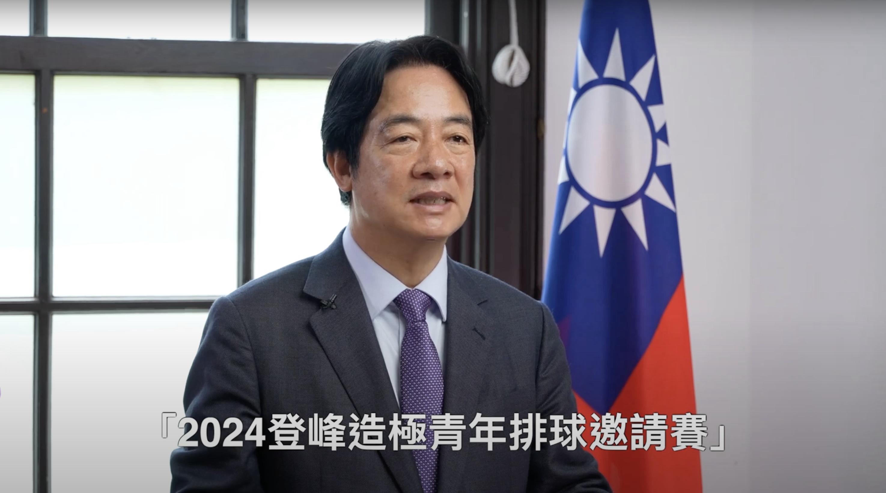 總統賴清德拍攝影片表示,「各位排球少年、少女大家好,2024登峰造極青年排球邀請賽,將在8月熱血登場,每一次跳躍、每一次攔網、每一次撲球、每一球得分,都是比賽的精彩關鍵。(中略)飛吧,為排球飛翔。」