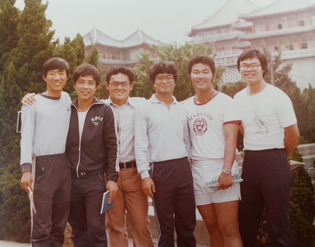 趙士強(右2)與文化大學的同學合影。趙士強提供中華隊在1982年重返國際正式比賽,趙士強就發生難忘的狀況。要前往漢城參加世界盃的中華隊員,是住在台北市立棒球場三壘側的樓上,就在出發前一晚,趙士強的肚子突然劇痛,先到附近的長庚醫院檢查,說是盲腸炎,得送去林口長庚醫院動手術。