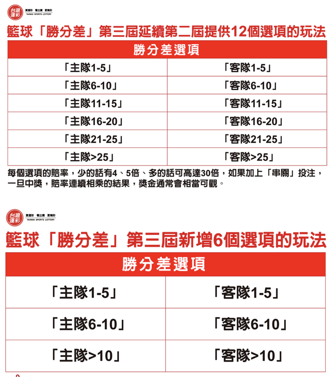 籃球在台灣相當熱門,民眾對於美國職籃也相當熟悉,而第3屆運動彩券籃球玩法依舊多元,其中,「勝分差」還新增6個選項,供彩迷更多選擇。