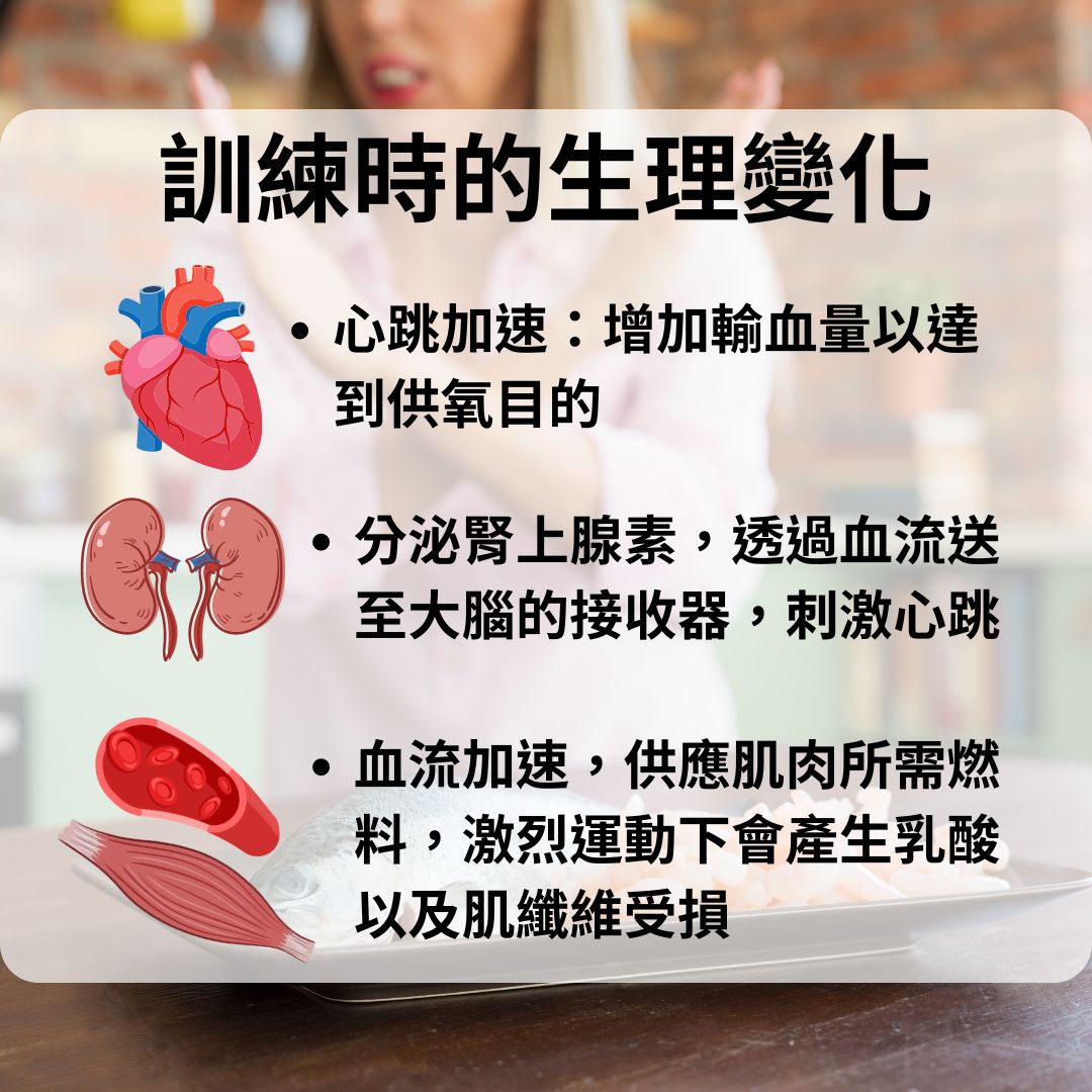 訓練時,交感神經會被活化,使心跳加快,以因應在運動時各大肌群都需要大量的血液供給,而當我們運動後,若是沒有確實的做好緩和(Warm-down)、收操的動作,即便體溫已經恢復至正常的範圍,身體仍然會處於亢奮的狀態,這時就會導致胃口不佳,不論是進食或是飲水,都有可能增加這樣的不適感。因此在訓練後千萬不要覺得緩和收操是一件很浪費時間的事,除了幫助肌肉伸展,避免過於緊繃造成運動傷害,也可以告訴自己的大腦「訓練結束了!」