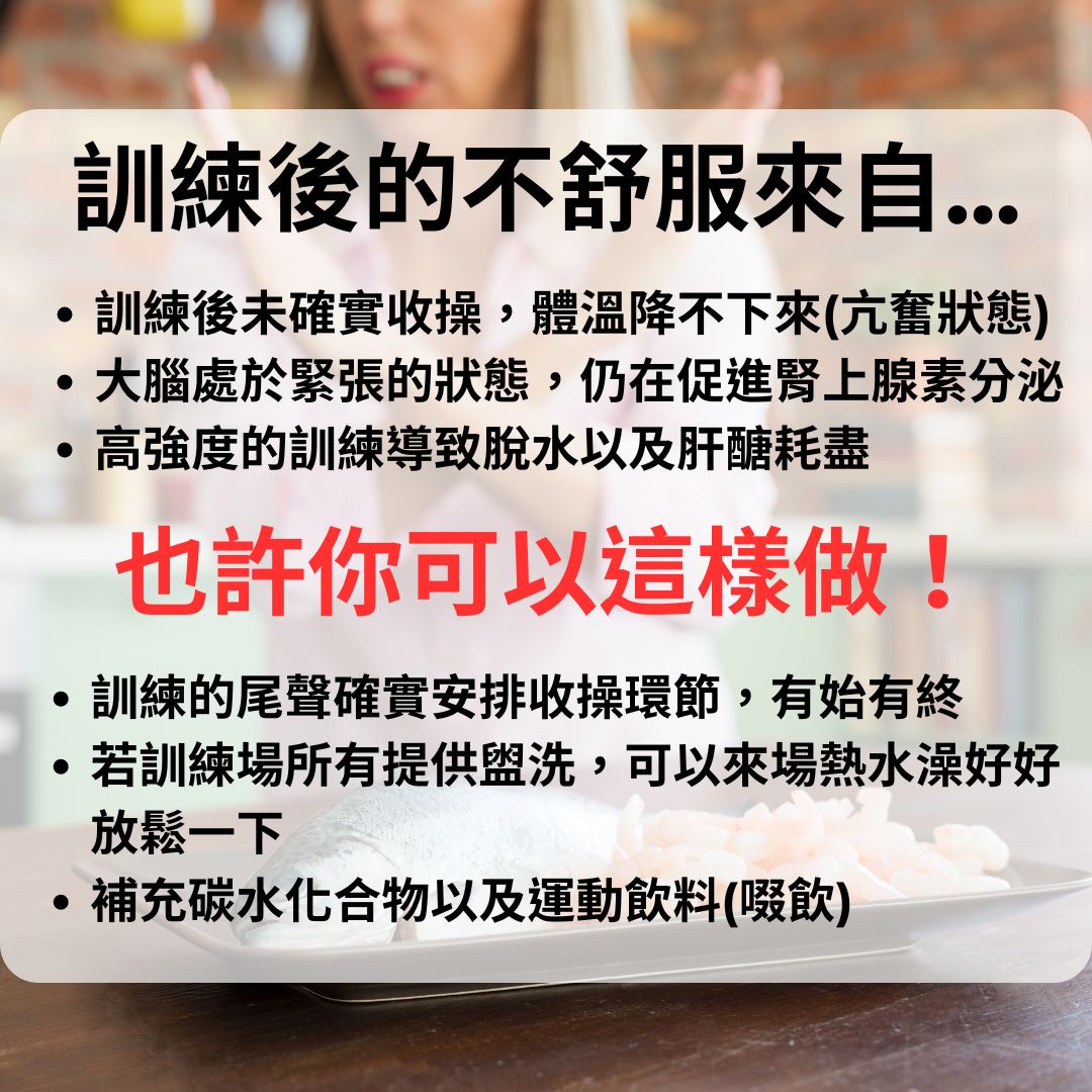 看完以上的文章,若是你平常訓練後沒有感到不適、吃不下,並不代表你在訓練時不認真唷!每個人體質的差異,在訓練後都會有不同的表現,上述的情況只是蠻多運動員會碰到的,因為運動員訓練時間長、強度高,加上教練在旁邊盯著,心理壓力大的強況下,身體本就會比較敏感一些,不過現在知道原因之後,相信大家都知道日後再次遇到這樣的情況時要怎麼處理囉!