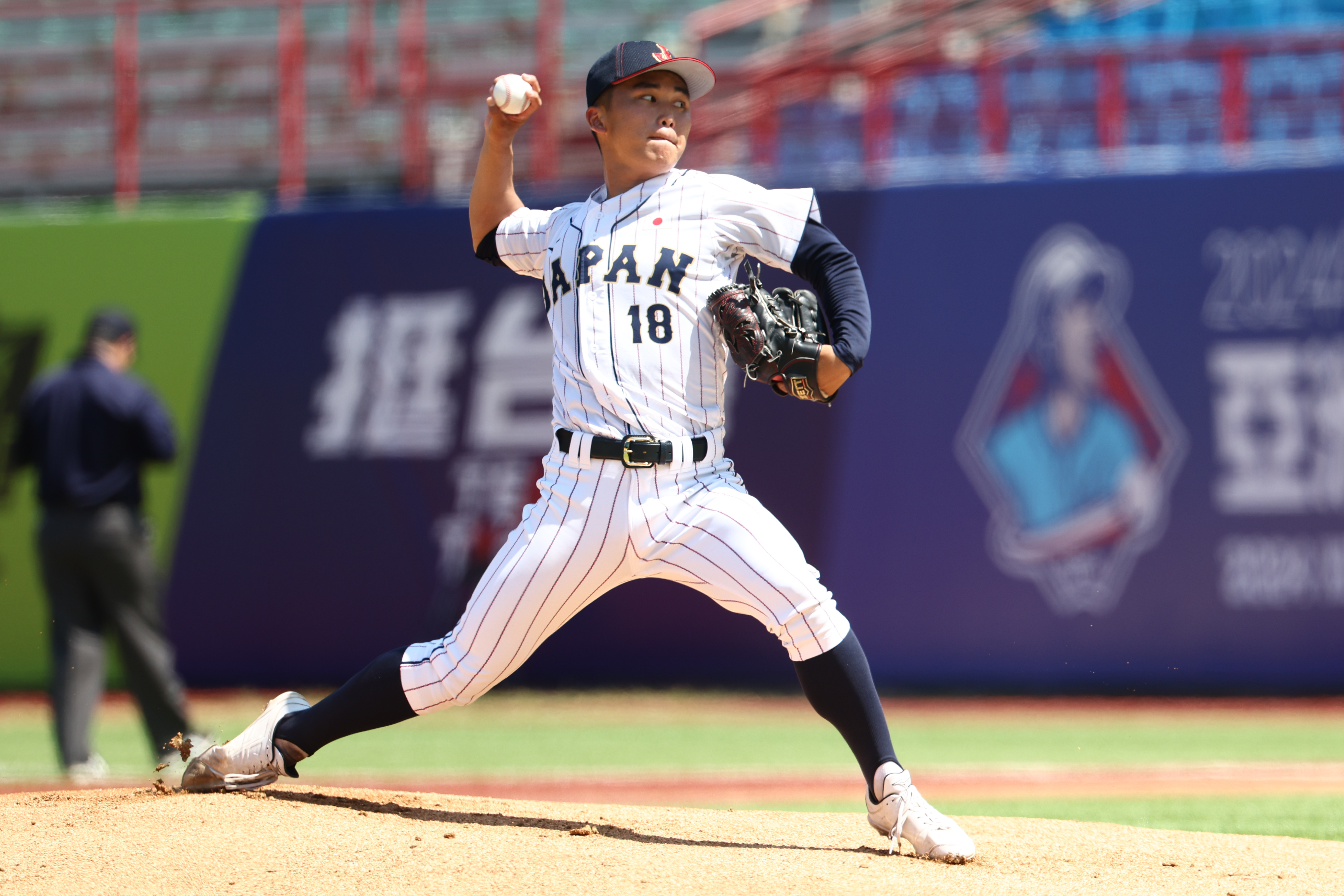 1局下無人出局日本靠2安打、1四壞攻佔滿壘,同樣是多隊選秀指名候補、花咲德榮高校游擊手石塚裕惺三壘滾地球造成原二壘跑者遭封殺,但開路前鋒、大阪桐蔭高校二刀流境亮陽已跑回第1分。