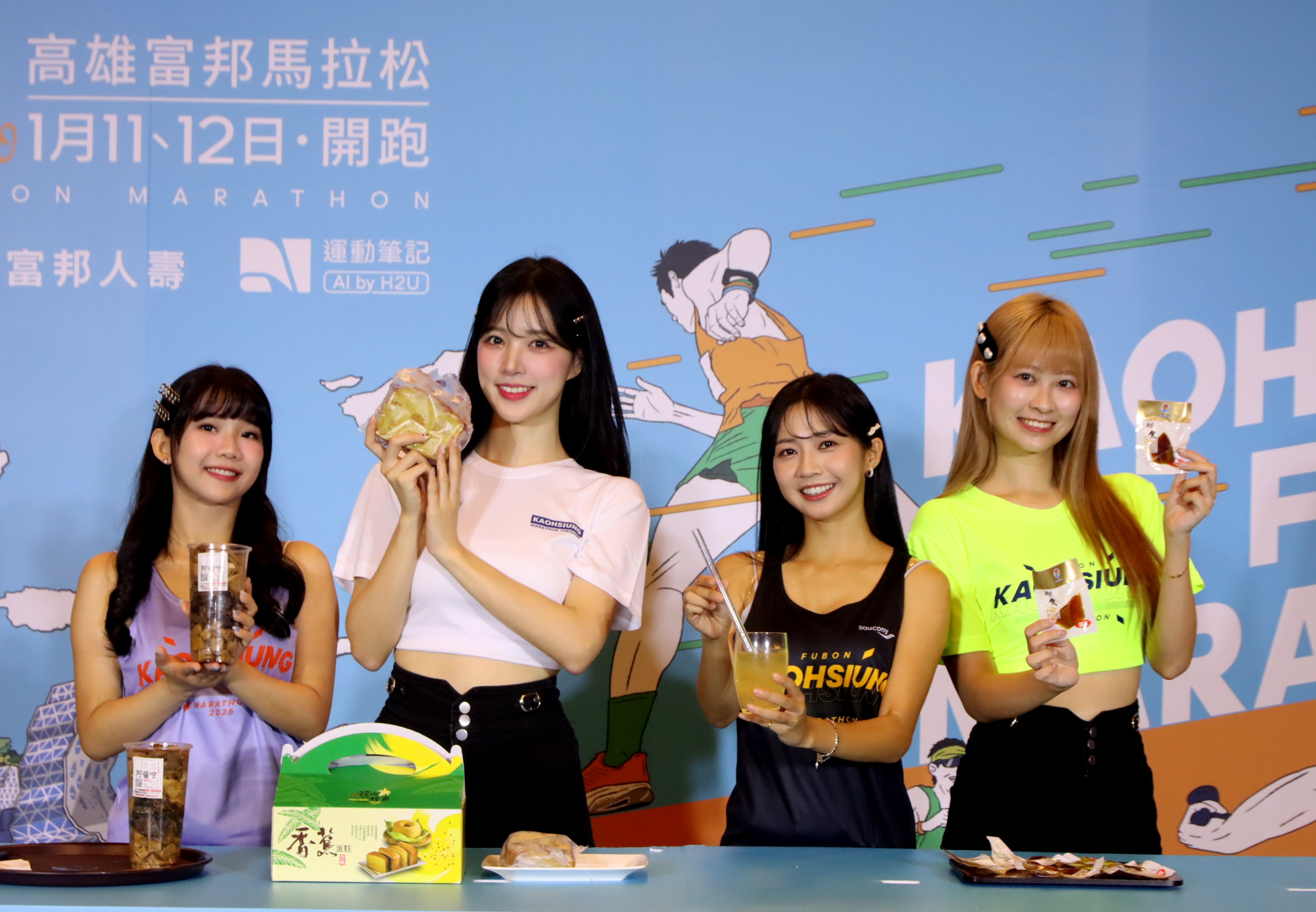 冠名贊助單位富邦人壽表示,為持續蓬勃國民運動風氣,今年已連續第五屆冠名贊助高雄富邦馬拉松,非常感謝能與高市府運發局一起努力推動賽事朝全民共享、環境共好邁進,結合保險本業的公平待客精神,共創身障友善環境實踐運動平權、及合力宣導防範詐騙重要觀念;同時,更持續串聯跑者們響應「富邦Run For Green」計畫,完賽里程累積滿40公里,富邦就為跑者種下1棵樹,讓運動足跡不僅促進健康、更助環保永續。 記者會現場特別邀請超人氣Fubon Angels 穿上賽事跑衣出席走秀。人氣成員慈妹展示馬拉松組的跑衣,奶昔展示半程馬拉松組,Jessy則穿上休閒組跑衣,來自韓國的富邦人氣外援李晧禎展示完賽T恤。