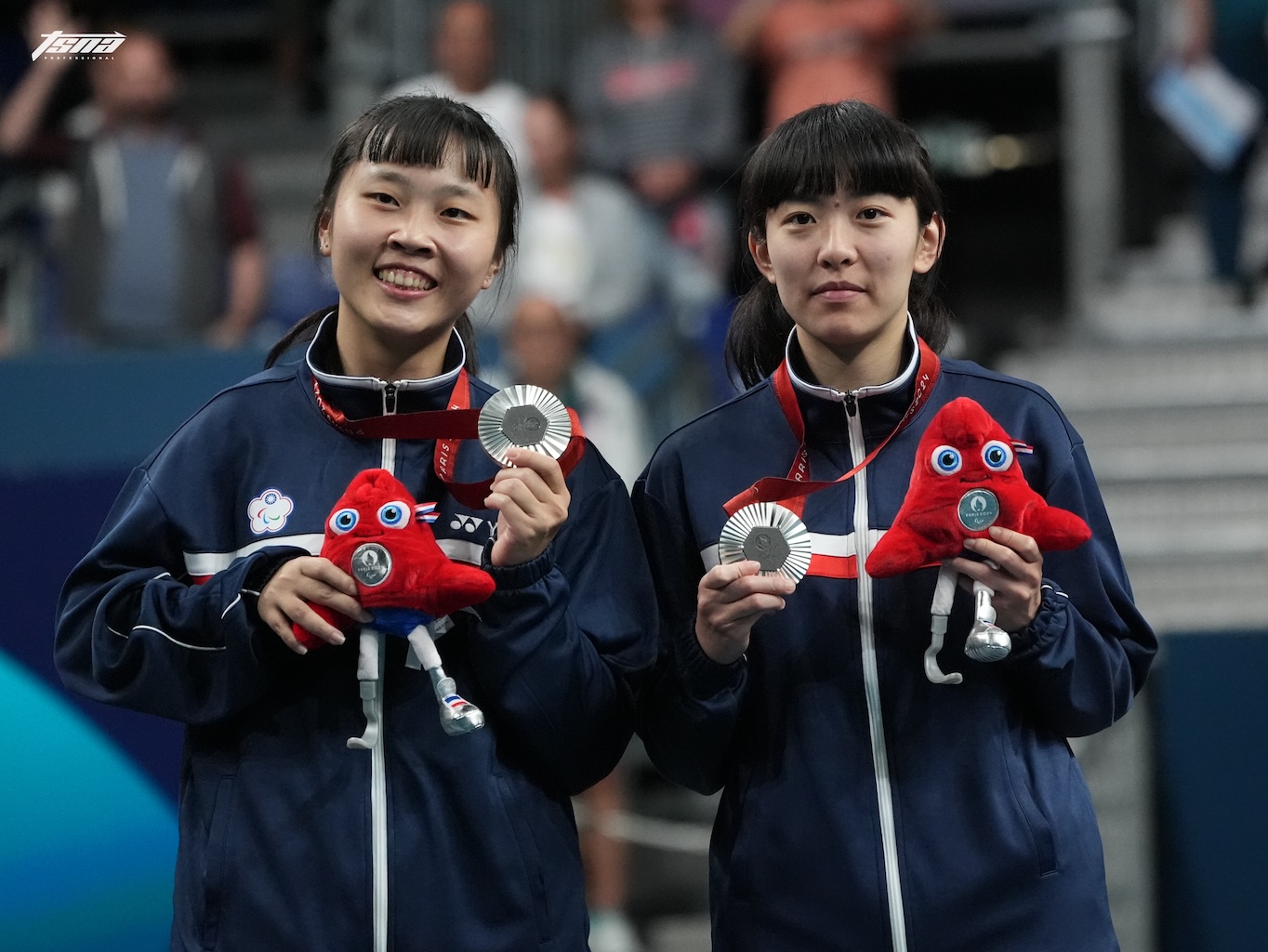 巴黎帕運桌球女雙銀牌林姿妤和田曉雯。(李亞璇攝)