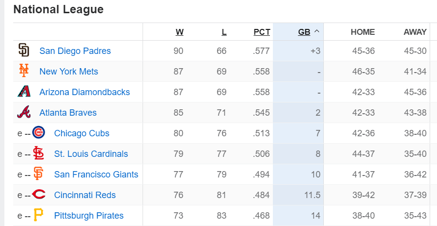 國聯方面外卡第一的是教士,領先大都會與響尾蛇3場,還有機會爭奪的大概剩下勇士了。