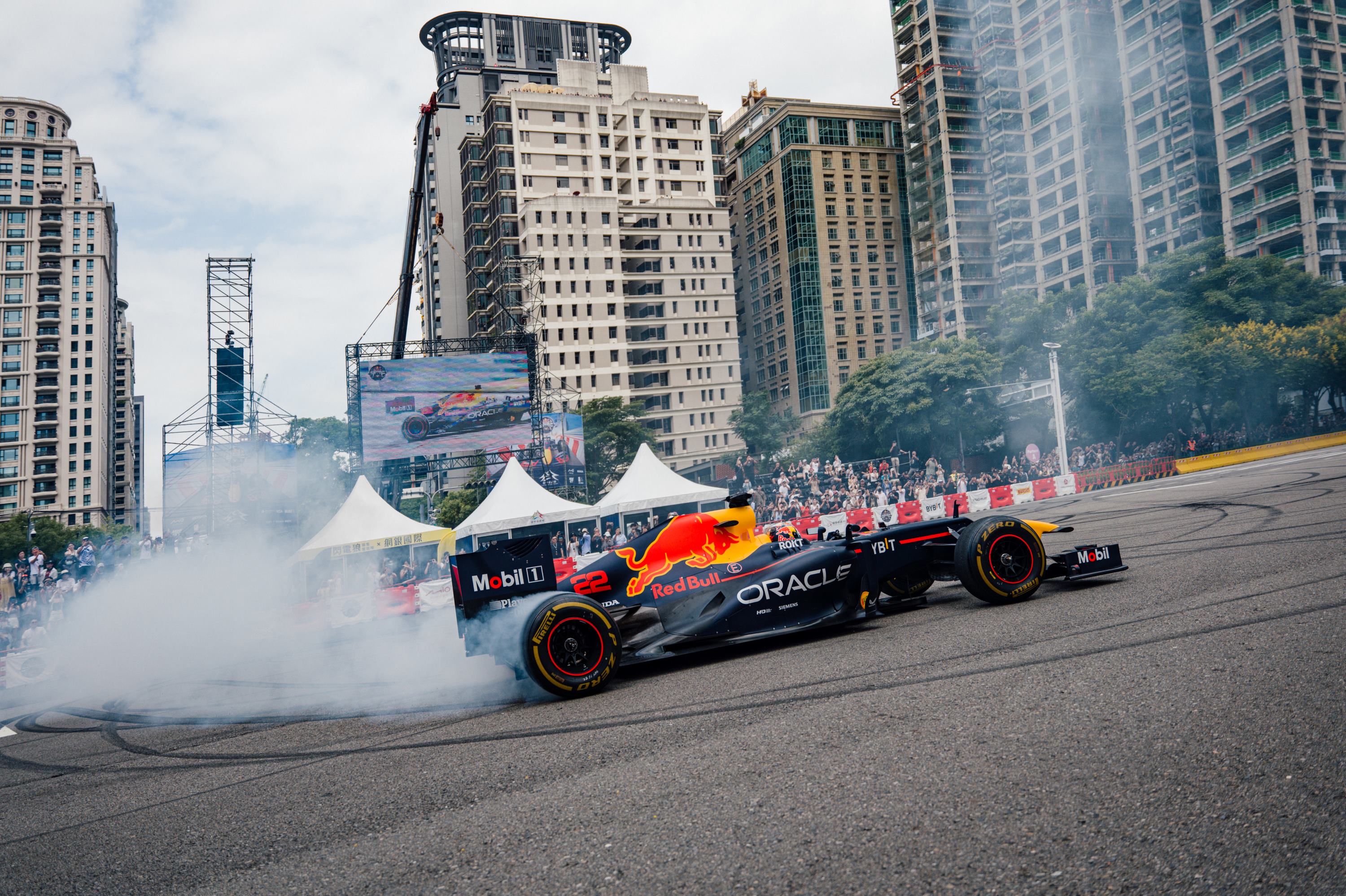 今天活動,Visa Cash App RB F1 車隊日本籍車手角田裕毅獻出他的 Red Bull Showrun 首秀 ,駕駛傳奇賽車在臺中市政路的「臨時跑道」,而全台超過6萬名車迷聚集在現場目睹甩尾燒胎等高難度技巧,角田更用台語問候觀眾,展現親和力。
