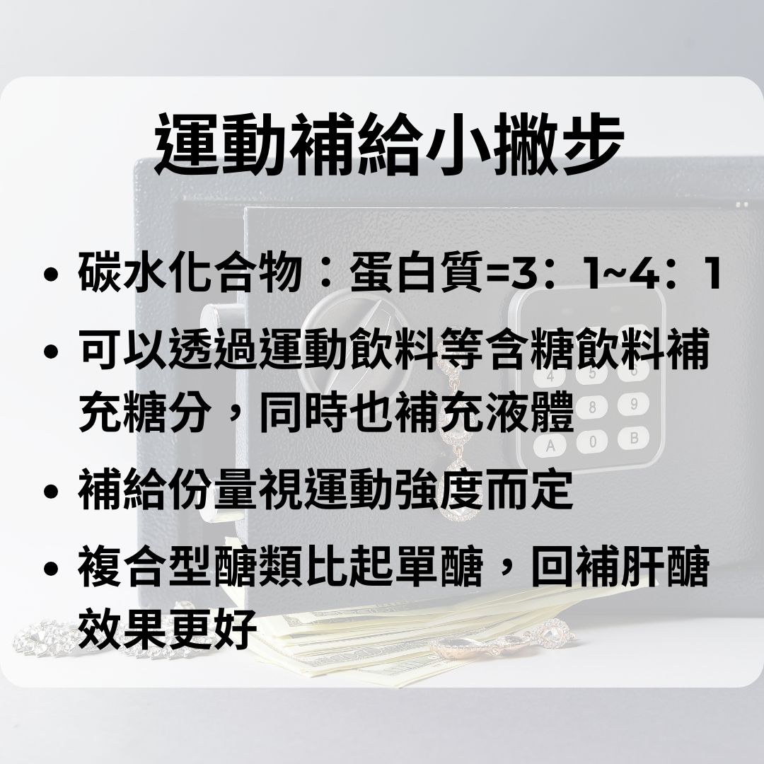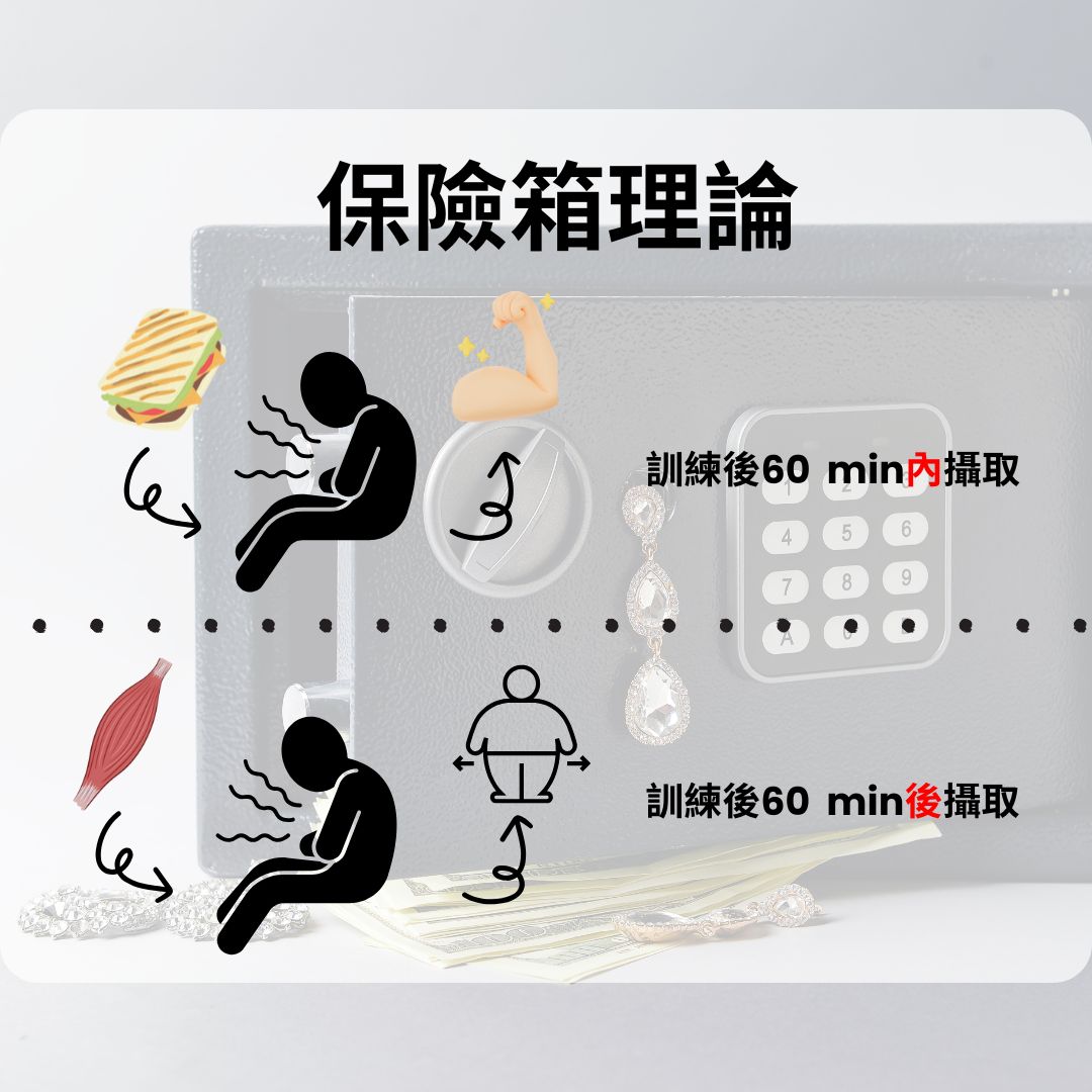 但為什麼會拿「保險箱」來比喻呢?因為肌肉就是我們儲存能量的一個場所,若是不好好補充醣類,只想一直吃蛋白質的話,可以把肌肉想像成保險箱,我們雖然保險箱越換越大,但是都沒有好好把錢存進去,這樣就有點本末倒置了。