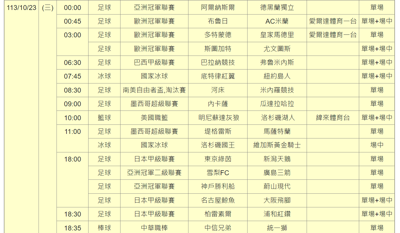 足球方面,又是個各俱樂部時程緊湊的一星期,22日凌晨起有亞冠,這星期有亞冠還有亞冠二級的比賽,歐冠與歐足聯盃,南美自由者杯則是進入淘汰賽階段。然後,周末各聯賽還是繼續鏖戰,這階段要小心豪門球隊的人員更換,隊比賽的戰意選擇有必要多了解。