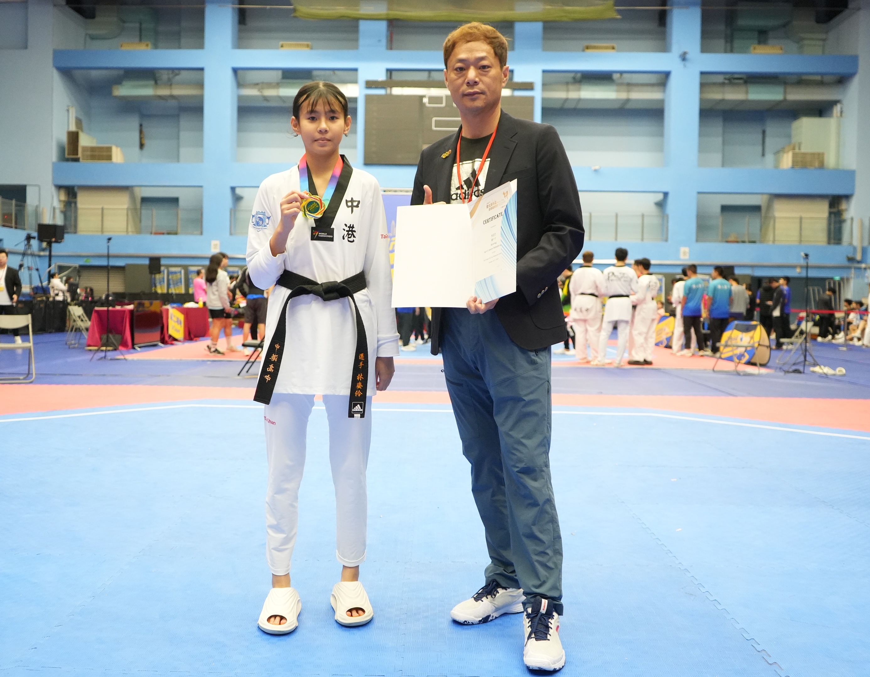 林姿伶目前就讀中港高中國三普通班,雖然僅利用下課時間練習,但由於國小就學習跆拳道、展現天份,已經二度入選國手,今天在臺北城市盃跆拳道邀請賽14至17歲組的女子44公斤級踢金,也希望未來在全中運獲得好成績。