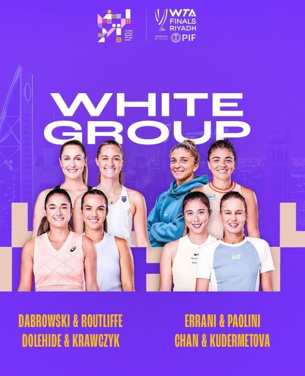另外詹皓晴今年與俄羅斯的搭檔Veronika Kudermetova是首次取得年終賽資格,白組對手有加拿大Gabriela Dabrowski/紐西蘭Erin Routliffe、義大利組合Sara Errani/Jasmine Paolini、美國組合Caroline Dolehide/Desirae Krawczyk。