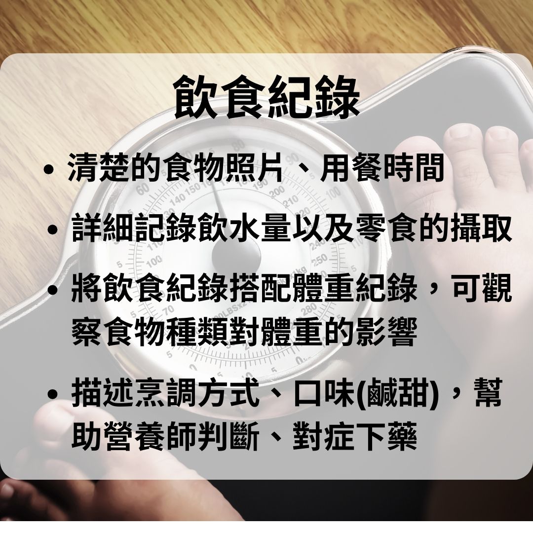 「飲食紀錄」是我第一個想到的方式,透過將每日攝取的食物記錄下來,從三餐到零食點心,甚至是白開水,確實的記錄下來,收集一周之後回過頭來審視,其實不難發現自己體重不斷飆升的原因在哪裡,大部分的民眾往往希望可以透過節食來達到提重的下降,再減重的初期確實得到良好、立即性的成效,但隨著體重的下降,肌肉的流失,使得基礎代謝率也下滑,減重越來越不容易,這時只要稍微有一餐吃的比較多一些,體重就會像是谷底反彈一樣一飛衝天,因此,這裡營養師會建議:三餐正常攝取,避免正餐以外的零食飲料!